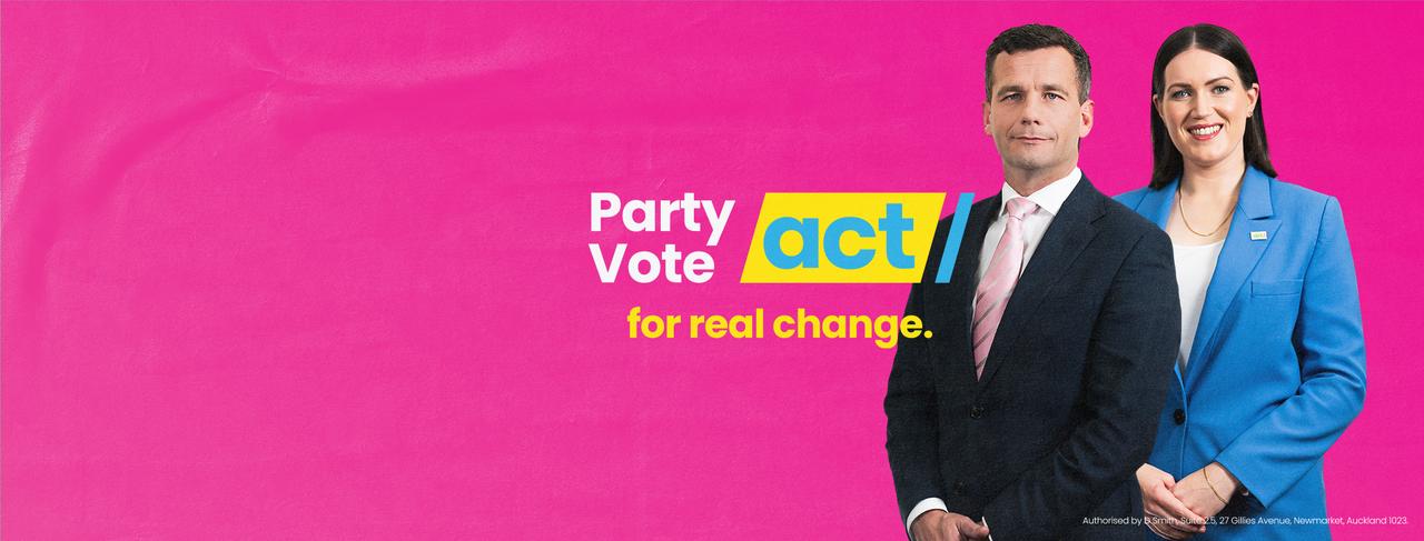 自由至上主義政党アクト党のデヴィッド・シーモア党首が「本当の変化が欲しいならアクト党に投票」というメッセージの隣に立つ政治ポスターに、大掛かりな落書きがされているのが、ニュージーランド北部のタウランガで先週発見された。