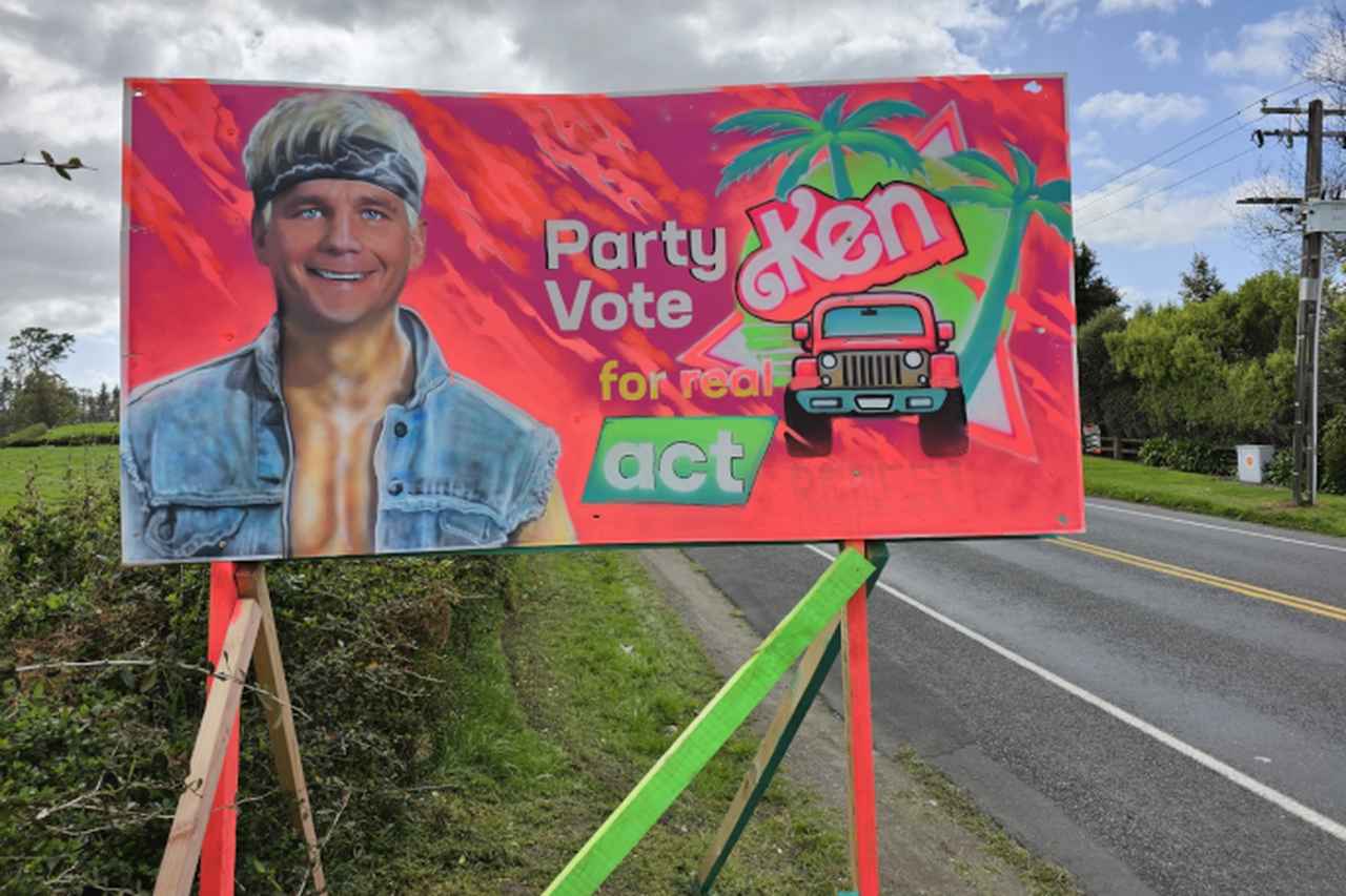 ニュージーランドのアクト党への投票を促すポスターに何者かが壮大な落書きをした。