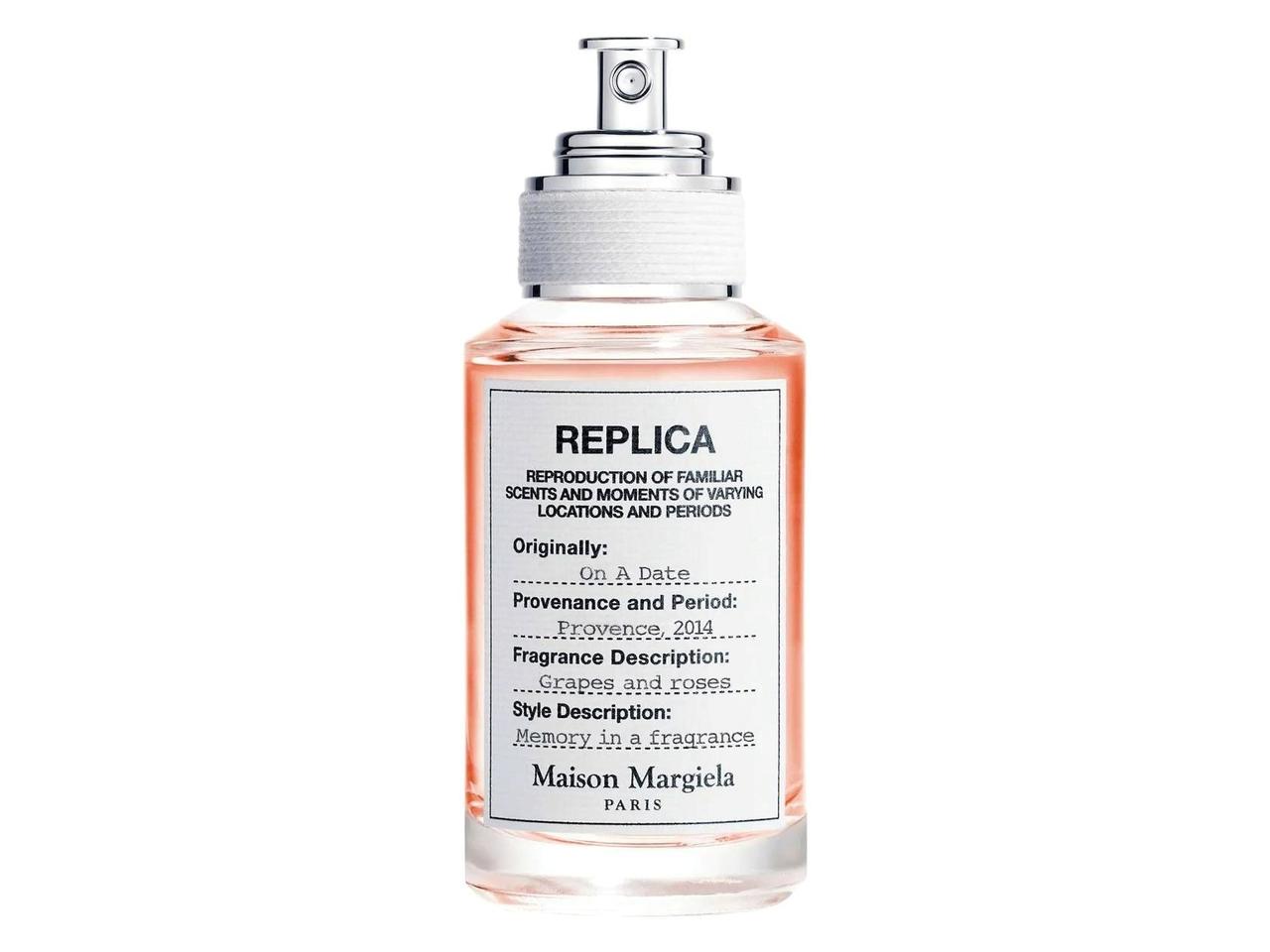 メゾン マルジェラ フレグランスの「レプリカ オードトワレ オン ア デート」は、プロヴァンスの壮大なブドウ畑を見下ろす夕暮れ時のデートから着想を得た香り。一面に広がるブドウ畑の芳醇な香りに、ロマンスを象徴する花であるローズの香りが加わることで、空を染めるオレンジ色の夕日に照らされながら、ワインを嗜む甘美なひと時を表現。