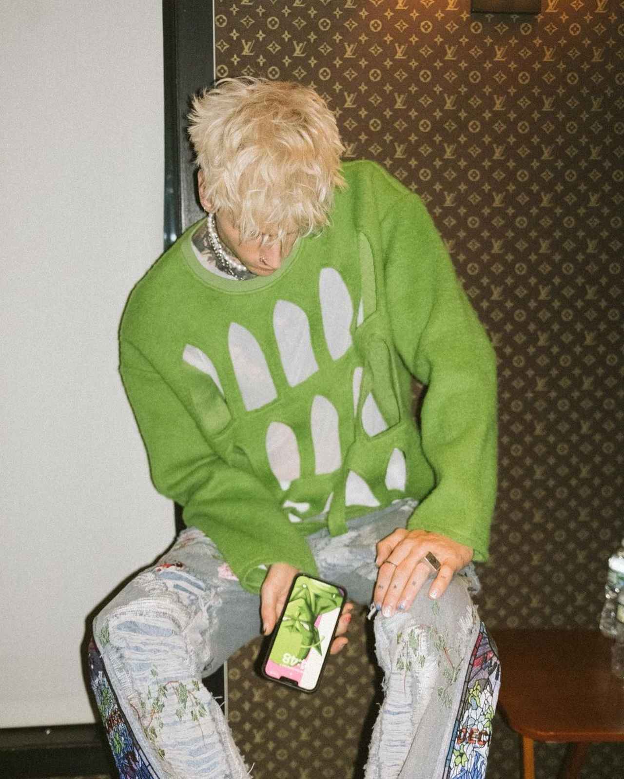 9月14日にマシンガン・ケリーのインスタグラムに投稿された写真。スマホの待受画面はピッコロ。©Machine Gun Kelly
