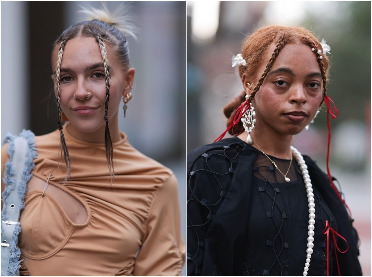 顔周りに極細のブレイズをつくったアレンジも、多くのファッショニスタが披露したヘアアレンジ。残りの髪を下ろさず、まとめ髪アレンジとミックスすることでブレイズの存在感が際立って、被りにくいオシャレなアレンジの完成。