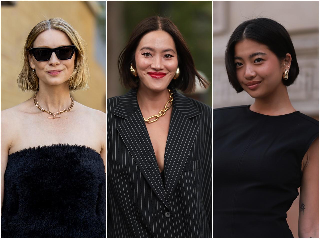 毛先をパツンと切りそろえた切りっぱなしボブも、ロンドン・ファッションウィークで多くのファッショニスタが取り入れていたヘアスタイル。前髪はつくらず、ワンレンカットでセンター分けにするのが今っぽい取り入れ方。
