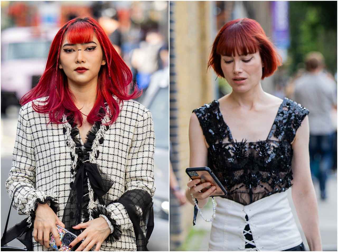 ヘアカラーでは、パキっとした発色のレッドヘアに注目。ファッショニスタたちの間では、レッドのヘアカラーにモノトーンコーデを合わせるのが今大人気。