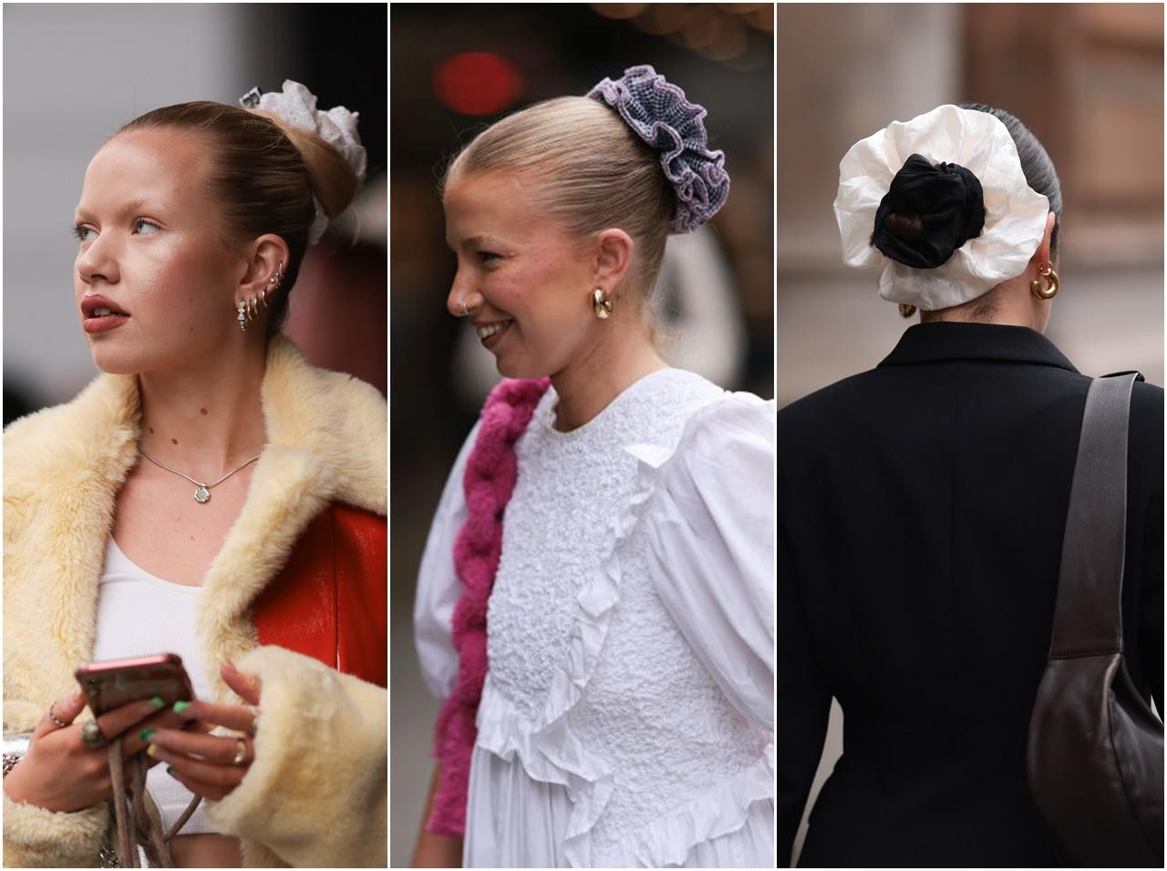 ヘアアクセでとくに被り率が高かったのが、存在感抜群のビッグサイズのシュシュ。顔周りをタイトにまとめたお団子ヘア「バレリーナバン」に、大きめのシュシュをオンするヘアアレンジを取り入れるファッショニスタが多かった。