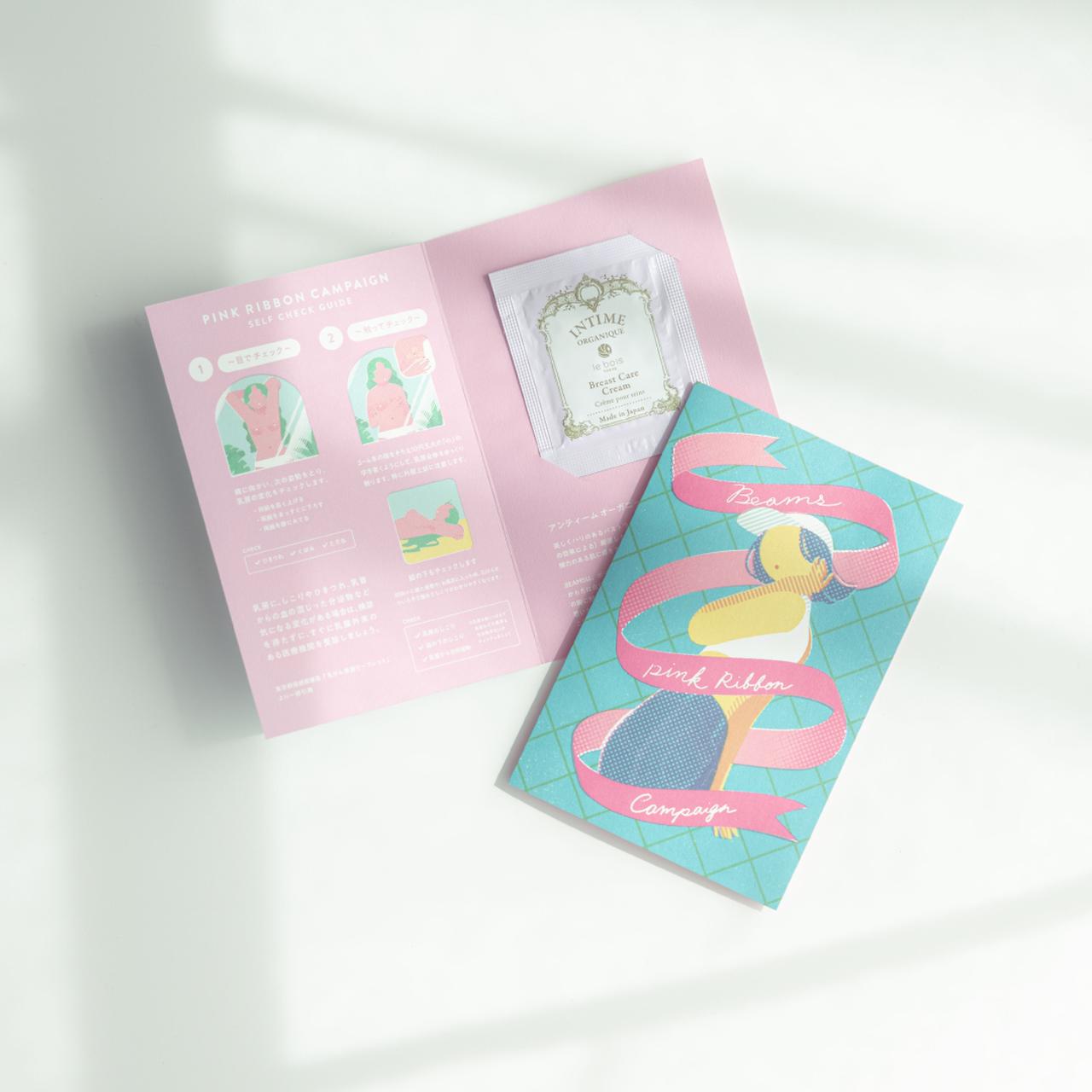 新たな取り組みとして、日本のボディパーツケアブランド「アンティーム・オーガニック」のバストケア製品「ブ・レスト ケアクリーム」(2gサンプル)にセルフチェックガイドを添えて、10月13日より対象店舗で配布。