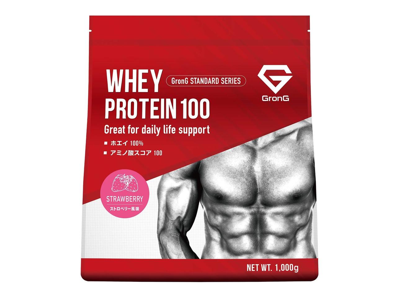 美味しくてコスパも抜群なプロテインを選びたい人にオススメなのが、GronG(グロング)の「ホエイプロテイン100 スタンダード」。シリーズ全風味で100g当たりのたんぱく質量75g以上を誇り、11種類のビタミンを配合し、アミノ酸スコアも100。効率よく身体づくりをサポートしてくれる。