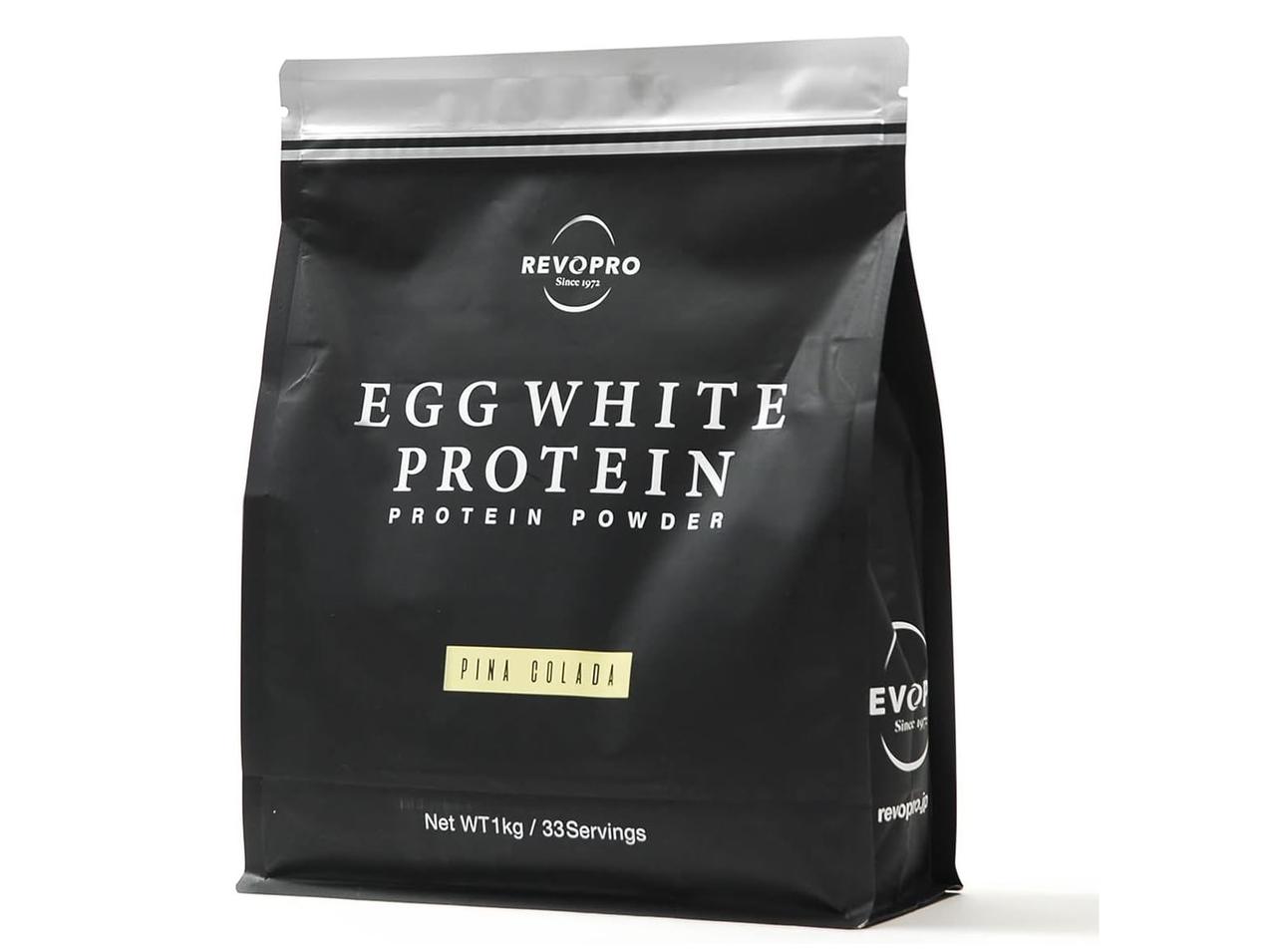 REVOPRO(レボプロ)の「EGG WHITE PROTEIN」は、卵白100%でつくられた乳糖フリーのプロテインパウダー。徹底的にこだわった体内利用率97.5%で、アミノ酸スコアも最高値の100。乳製品摂取後にお腹の膨張感といった症状の引き起こす乳糖不耐性の人でも飲みやすいプロテインとなっている。