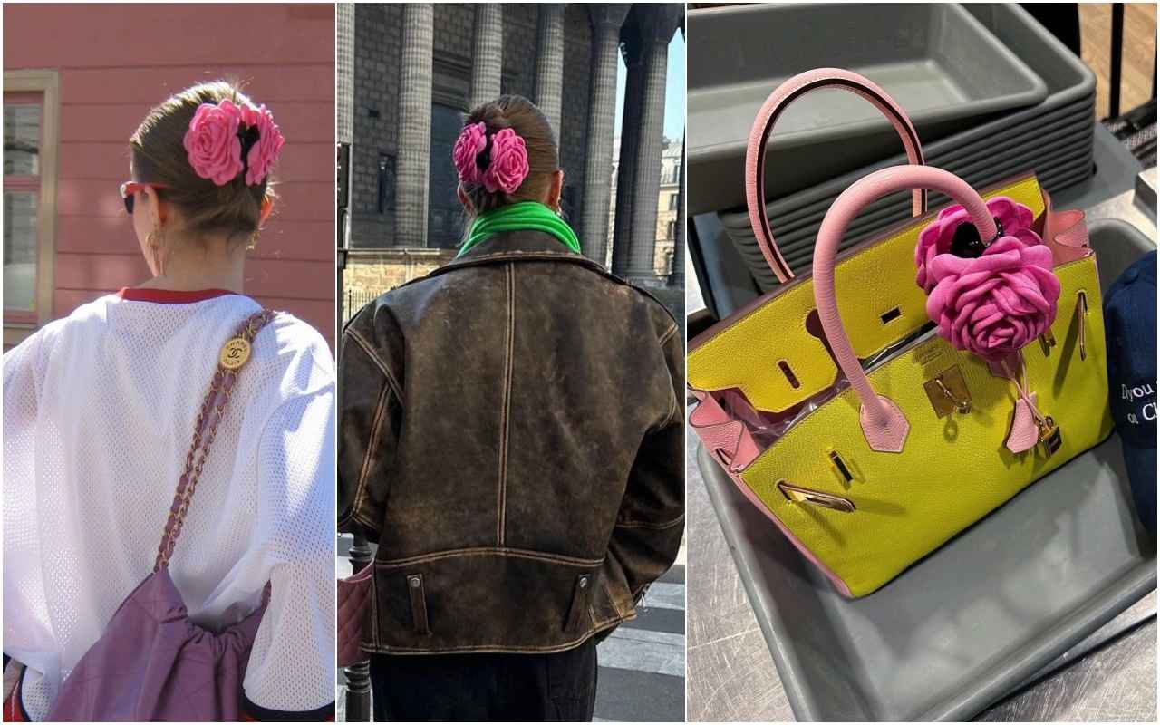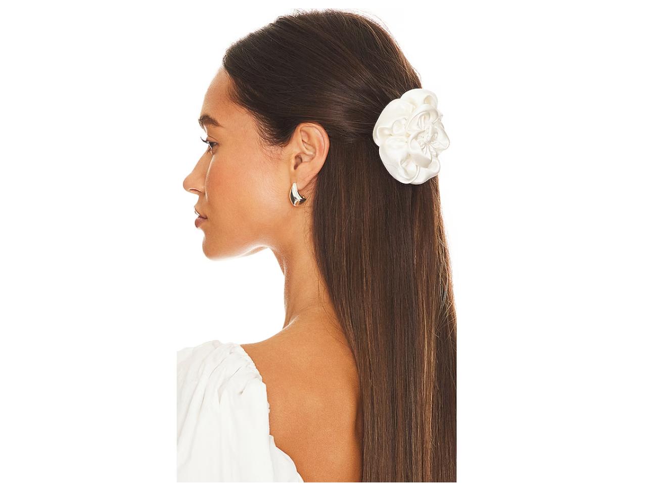 そんななか、今度は花のヘアアクセサリーがトレンドに浮上。とくにバラなどの丸い花のモチーフがついたヘアクリップ、バレッタ、ヘアゴムが人気で、トレンドに敏感な人たちの間で注目度がじわじわ上昇中。