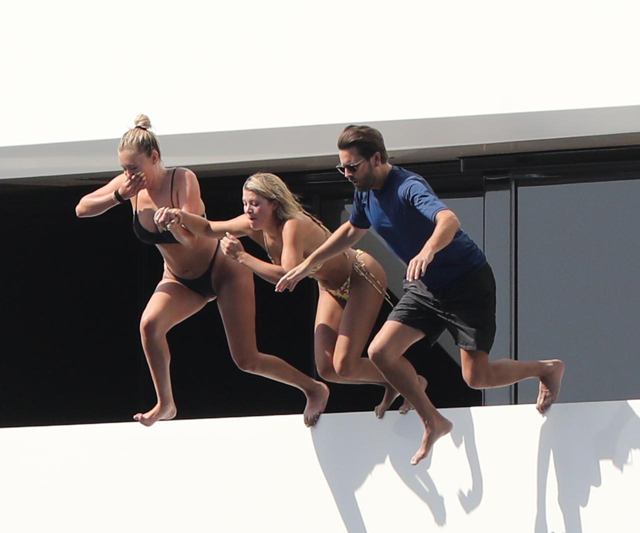 2019年、ヨットから海へと飛び降りるスコット(右)。当時の恋人ソフィア・リッチー(中央)とは、スコットが34歳、ソフィアが19歳の時に交際に発展して物議を醸した。