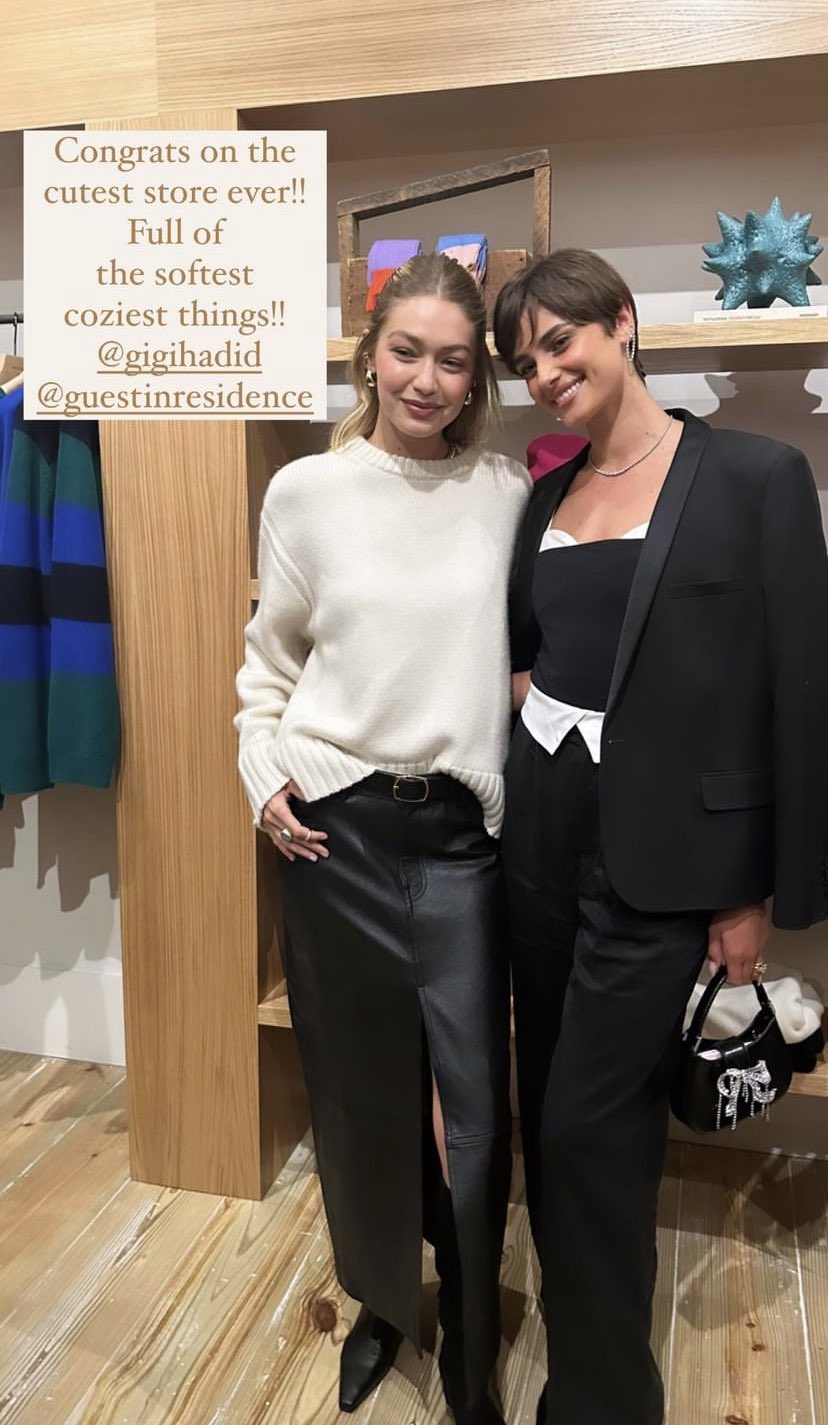 テイラーはストーリーズにジジとのツーショットを公開し、「すごく可愛いいストアのオープンおめでとう! 最高にソフトで居心地が良い!」とコメントした。