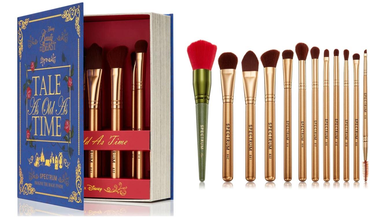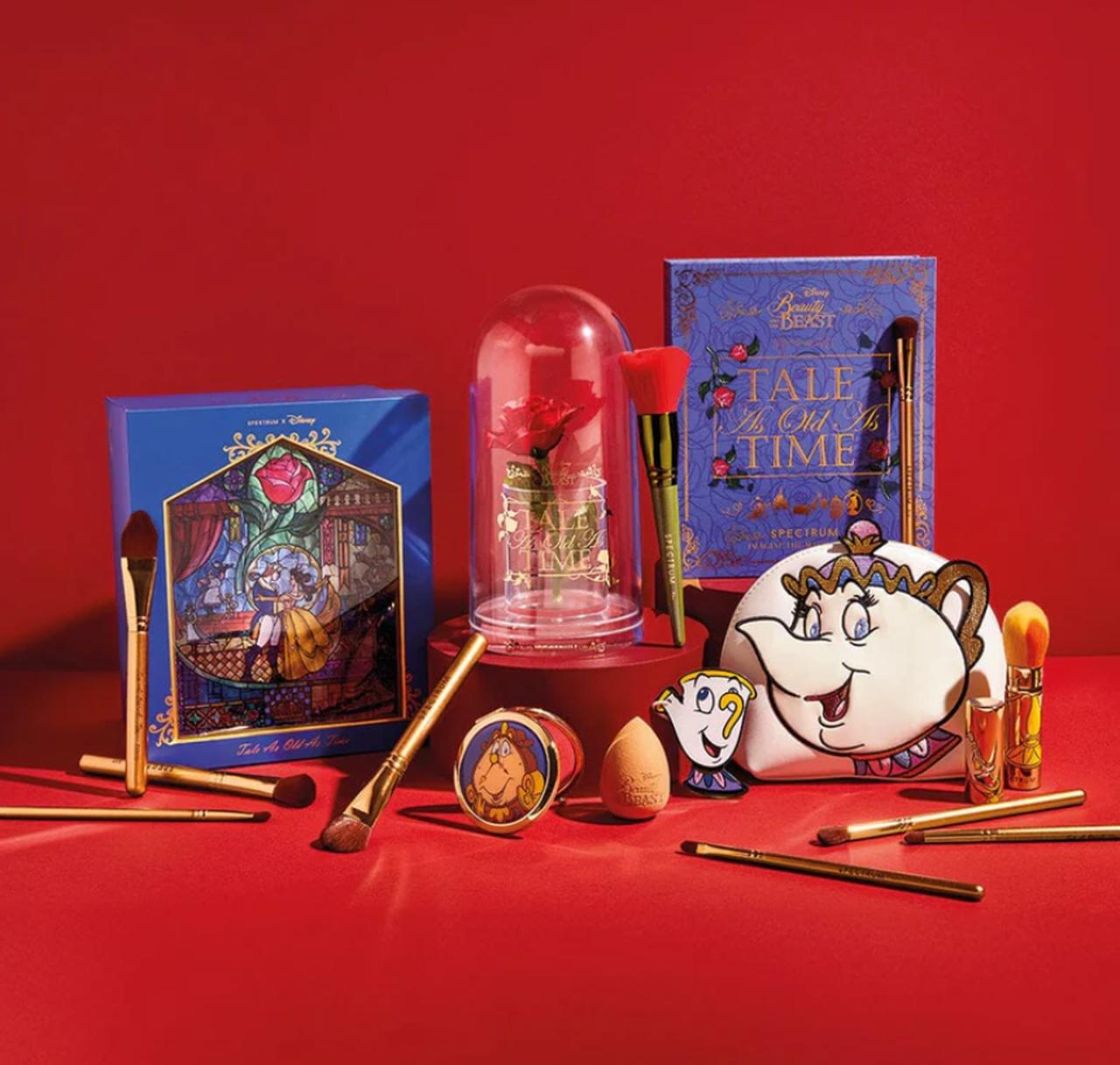 『美女と野獣』とスペクトラム・コレクションのコラボでは、ブラシ12本がついたセットをはじめ、ブラシやスポンジ、ポーチなどのセット、ブラシがオシャレに収納できるケース、高品質なカブキブラシ、コレクションのすべてのアイテムが入った豪華セットなどがラインナップ。