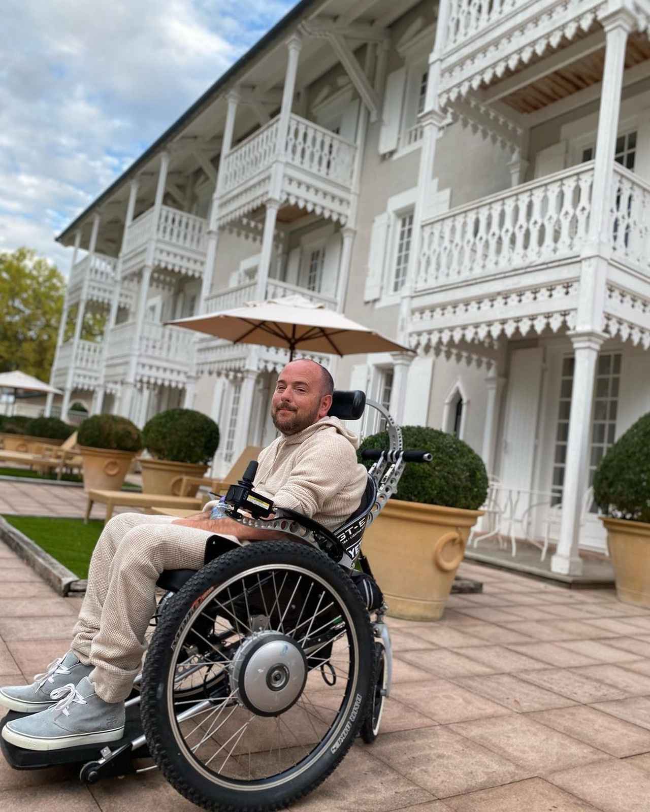 フランスのMaison Guérardの散策するデヴィッド・ホームズ。©David Holmes/Instagram