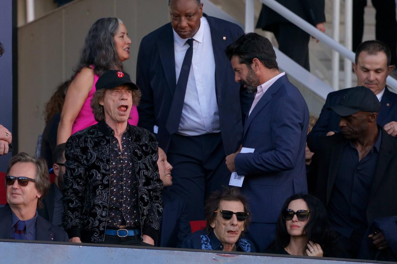 ローリング・ストーンズのミック・ジャガーとロニー・ウッドをバルセロナ対レアル・マドリーのクラシコ戦で発見。