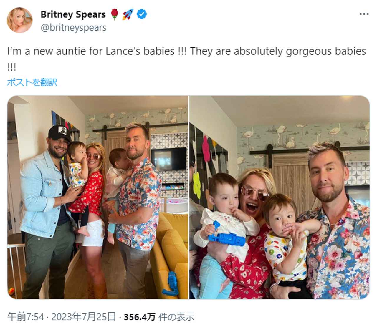 2023年7月にランス・バスの子どもに会いに行って「おばさんになった」とツイートしたブリトニー・スピアーズ。©Britney Spears/Intagram