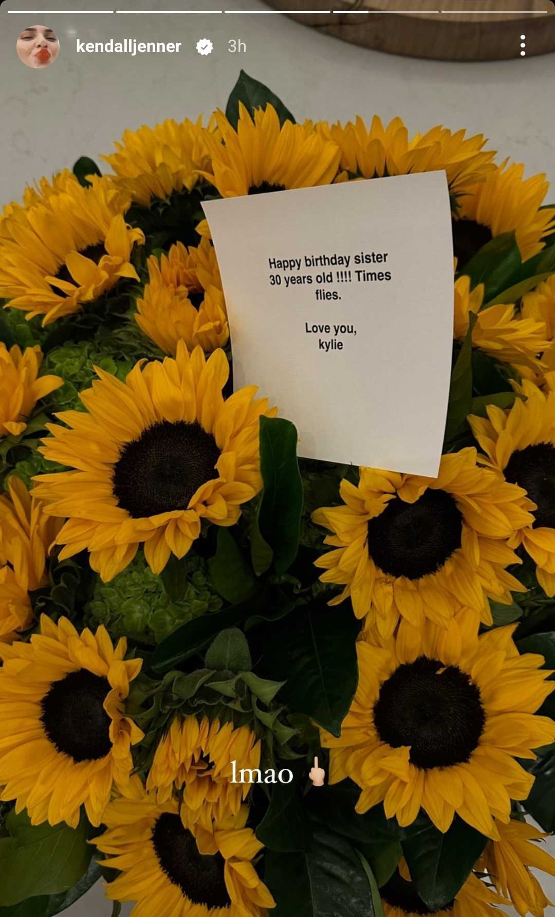 ことの発端となったのは、11月3日のケンダルの誕生日にカイリーがブーケを送ったこと。カイリーはひまわりのブーケをケンダルに送り、「30歳の誕生日おめでとう、お姉ちゃん!時間が経つのは早いですね!愛をこめて、カイリーより」と手紙を添えた。