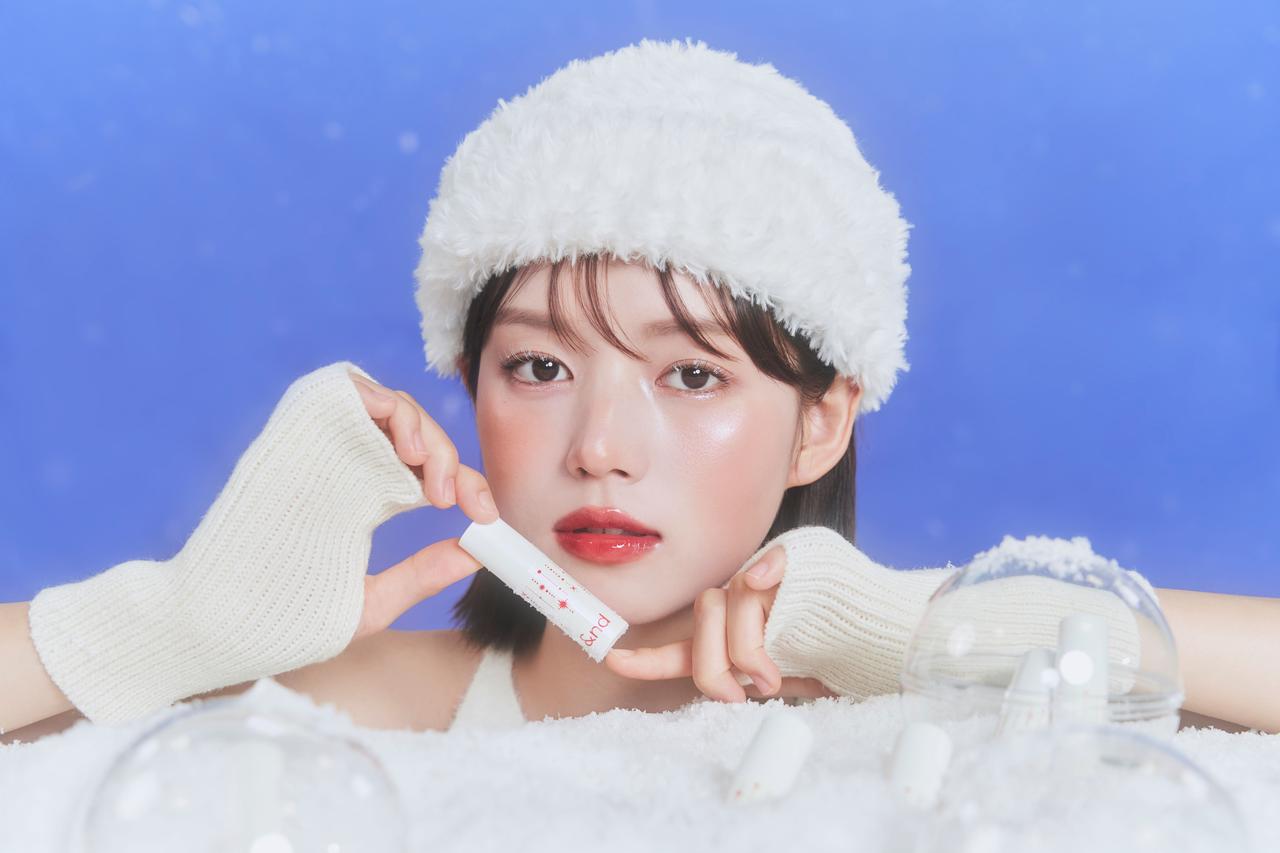 「グラッシーボムティント」は、透明度の高いツヤとうるおい・色持ちの良さに加え、母体である「rom&nd」での人気カラー分析から生まれた色展開が特徴のリップティント。ホリデーシーズンに映えるよう、ブランド初の試みとしてラメをプラス。ぷるんと立体感のあるツヤとパール&ラメの輝きが冬っぽくてカワイイ。