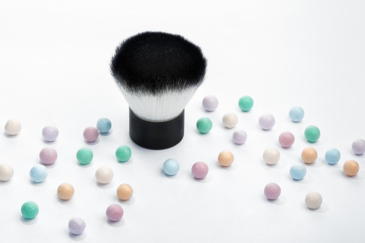 カブキブラシとは、毛先がドーム状にカットされたメイクブラシのこと。持ち手の部分は短く、毛量が多く密集しているのも大きな特徴。日本の伝統芸能である歌舞伎のメイクで使われるブラシから着想を得ており、現在は日本のみならず海外のコスメブランドからも多く展開されている。