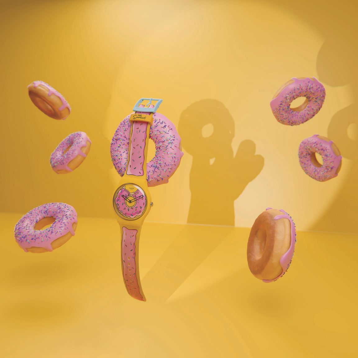 あのドーナツがスウォッチに! スウォッチ(Swatch)は『ザ・シンプソンズ』の作中に登場するアイコニックなドーナツにインスパイアされたスペシャルウォッチ「SECONDS OF SWEETNESS」を発表。Swatchストアとswatch.comで販売中!(フロントロウ編集部)