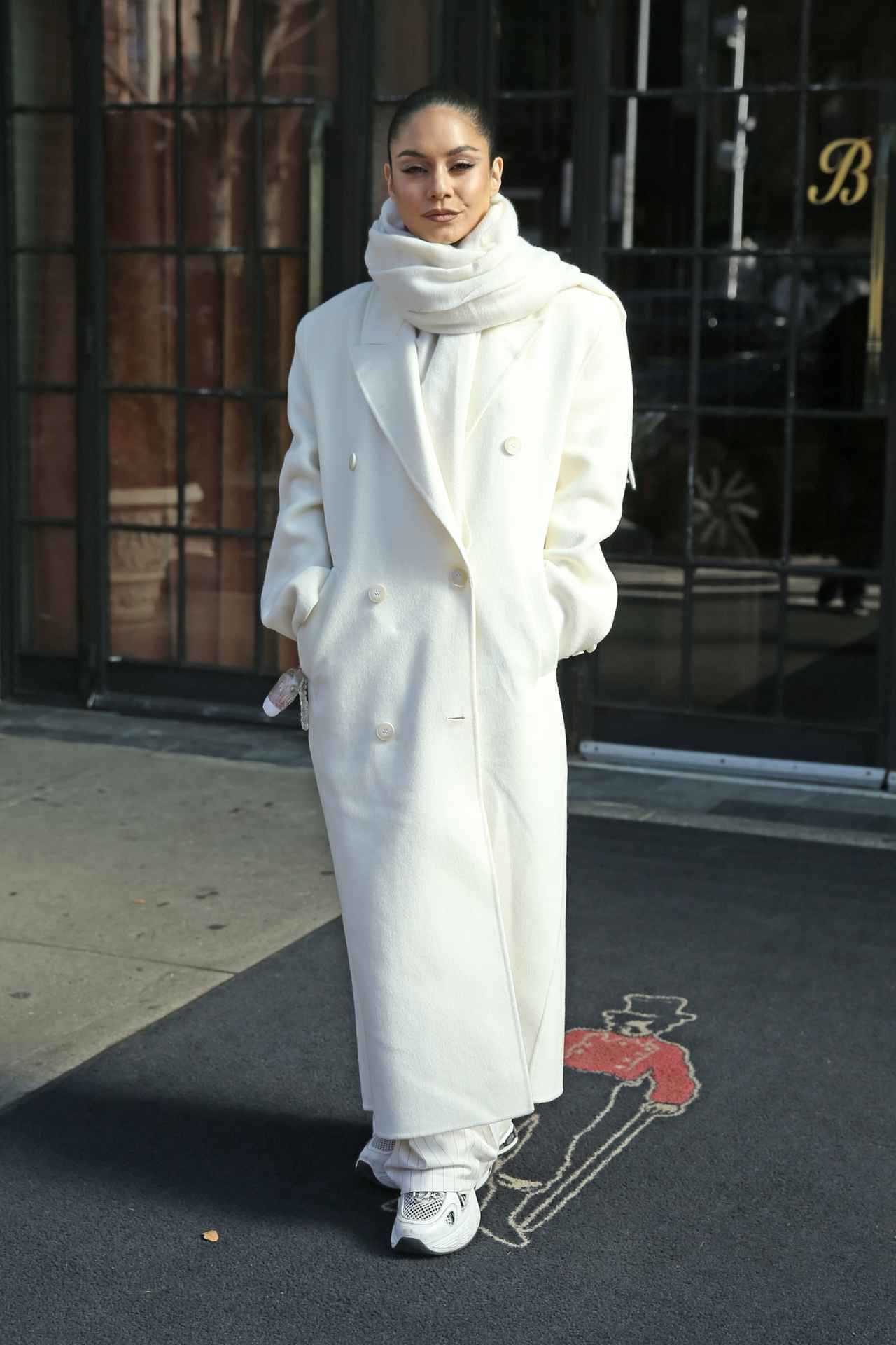 すっかり寒くなったニューヨークで、オールホワイトコーデで魅せたヴァネッサ。この日の主役は、パッと明るくなる真っ白なロングコート。