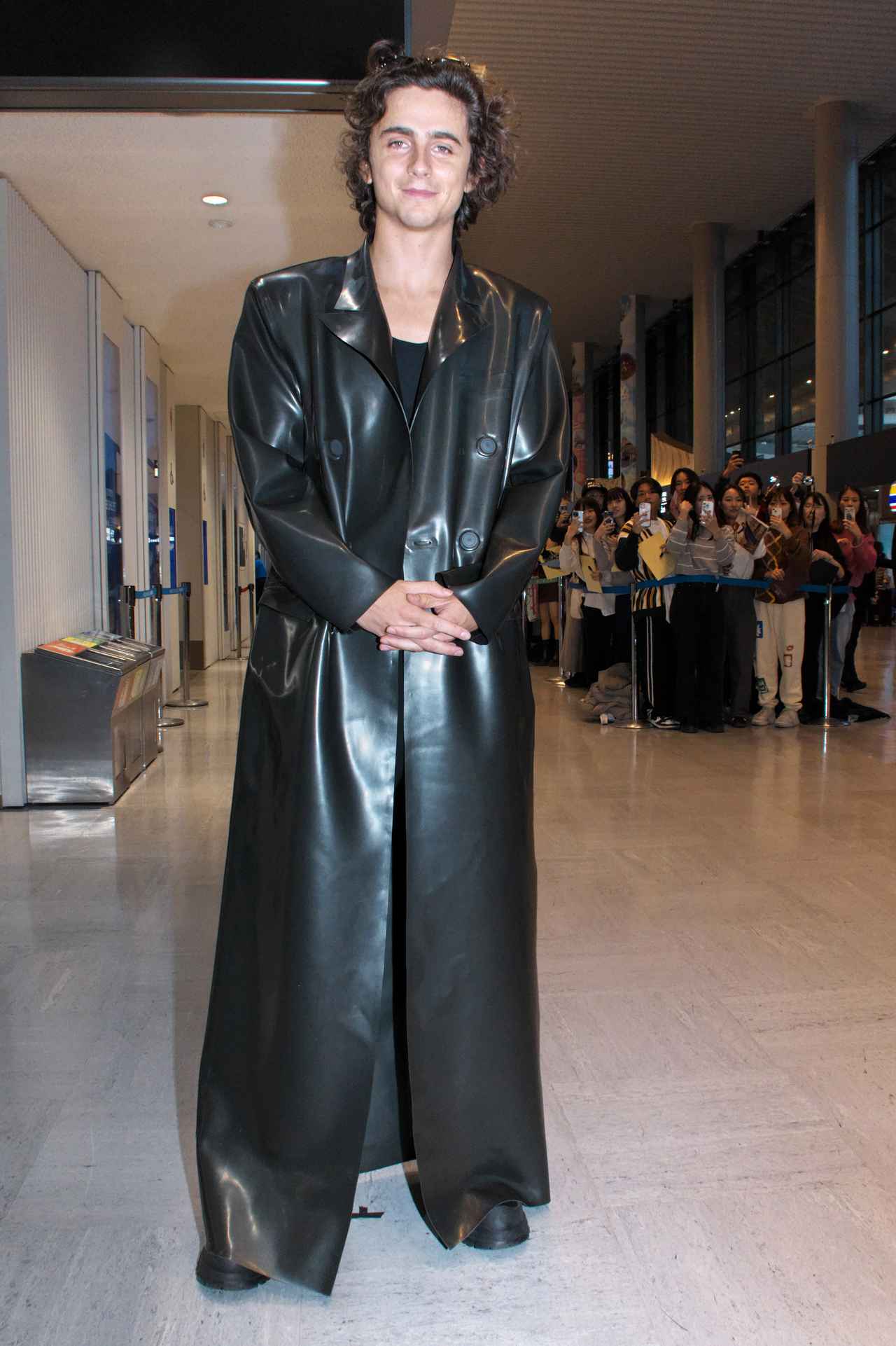 ティモシーは映画『マトリックス』のネオを彷彿とさせるレザーのロングコートを着用し、一方デュアはキルティングジャケットとスウェットのジェットセッタースタイル。ティモシーの姿をひと目見ようと集まったファンの中には、同日に日本を訪れたデュアの姿を見ることができたラッキーな人もいた。