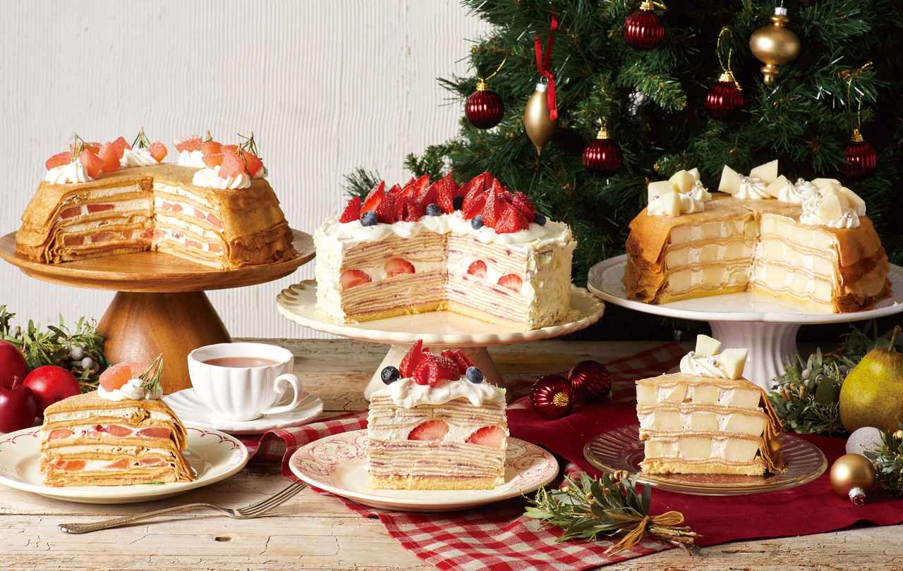 まるでクリスマスケーキのような華やかな見た目のミルクレープが期間限定で登場するのは、極上のクレープが楽しめるアフタヌーンティー・ラブアンドテーブル。