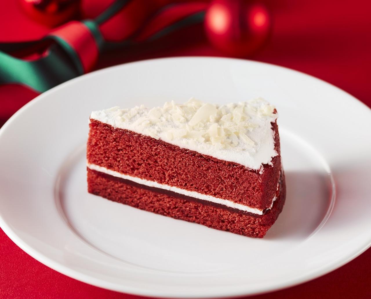 「ベルベットケーキ ストロベリー×ラズベリー」は、しっとりとしたスポンジ生地に甘酸っぱいベリーがアクセントのベルベットケーキ。真っ赤な見た目がホリデーシーズンを彩ってくれる。