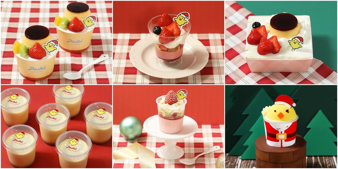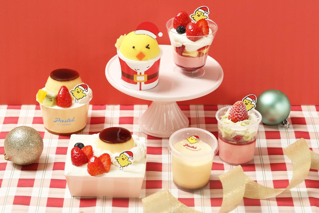 「パステル」の公式キャラクター「ぷりにゃん」の相棒「タマコ」がサンタクロースに変身した「サンタ タマコプリン」や、看板商品「なめらかプリン」のカップの蓋に「サンタ タマコ」をデザインした「クリスマス なめらかプリン」のほか、「サンタ タマコ」のピックを飾った「なめらかプリン ア・ラ・モード クリスマス」「クリスマスショートケーキプリン」「苺のブランマンジェパフェ」「苺のプリン ア・ラ・モードケーキ」が登場する。