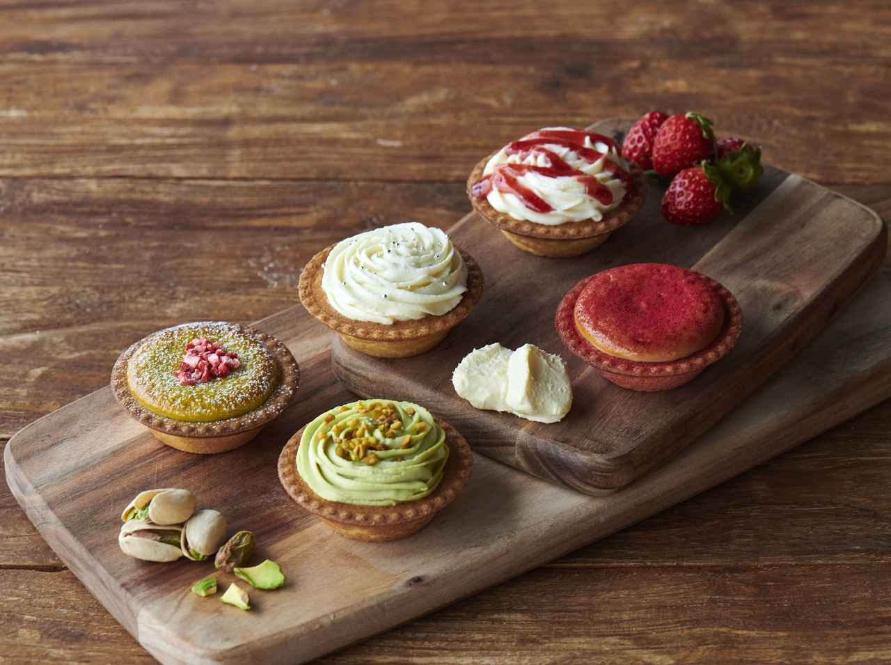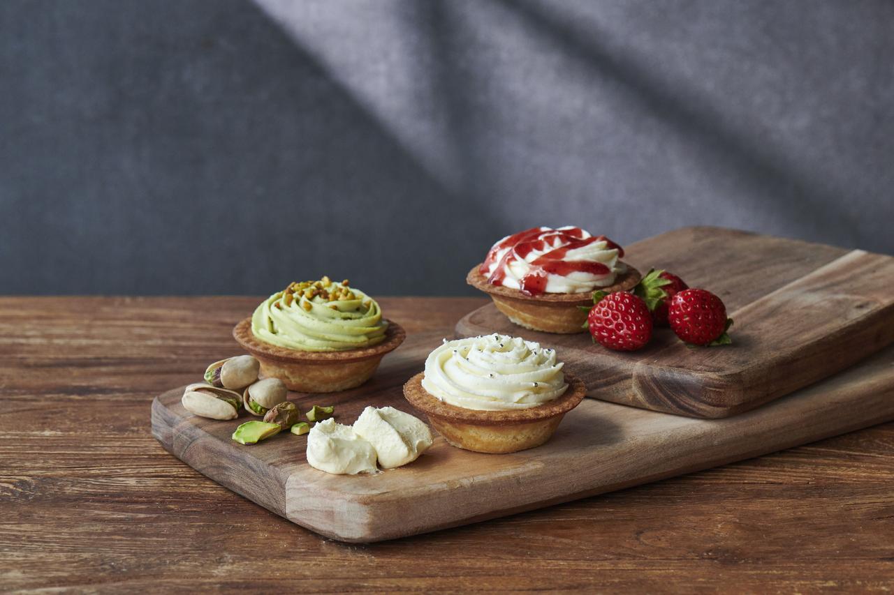 店舗で焼き上げる焼きたてチーズタルトからは、過去のレシピをリニューアルしてピスタチオペーストを増量した「焼きたてチーズタルト ピスタチオベリー」、人気フレーバーの一つでクリスマスに合わせて復活した「焼きたてチーズタルト フランボワーズ」を展開。