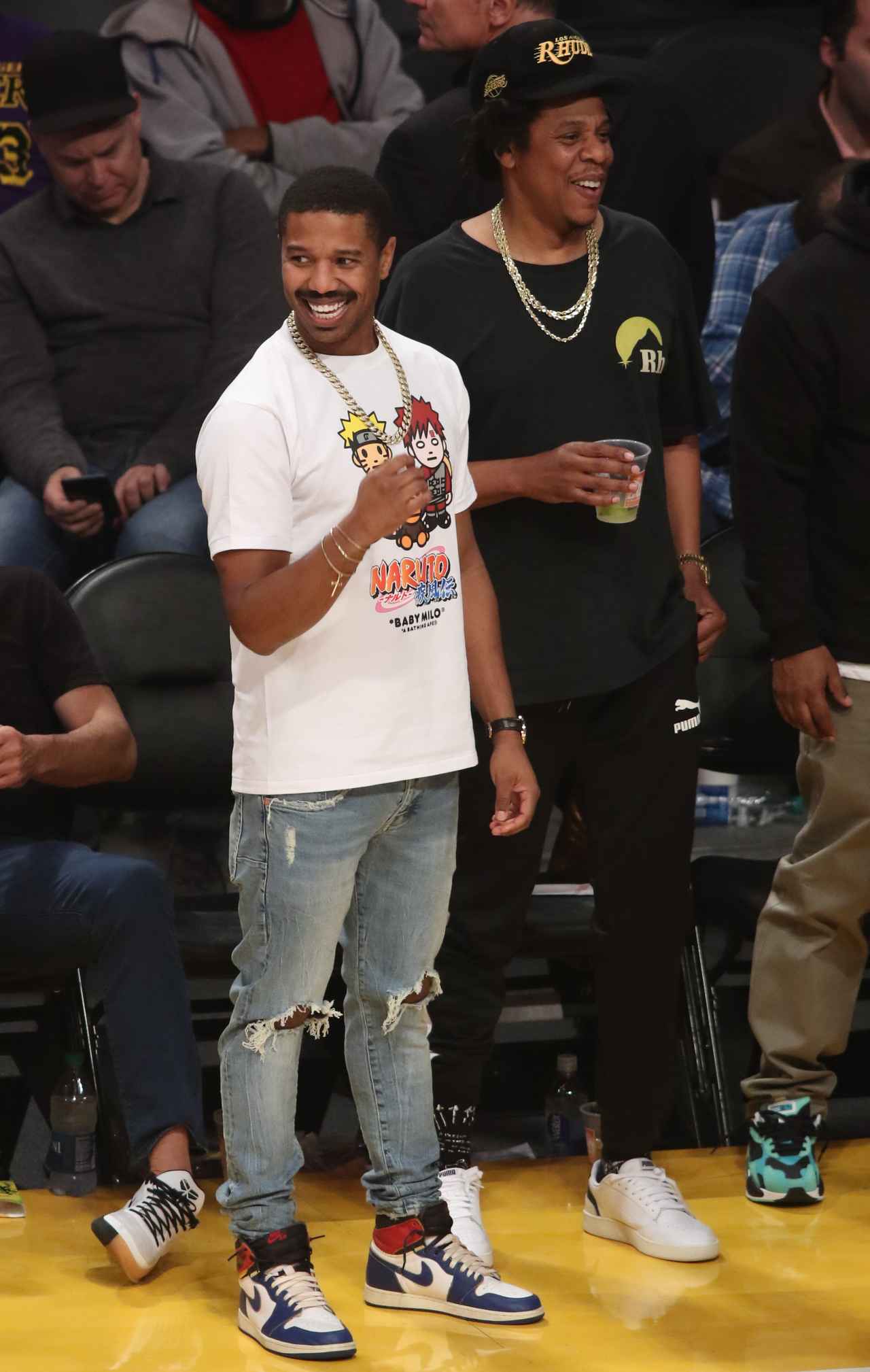 『NARUTO-ナルト-』のTシャツを着てNBA観戦するマイケル・B・ジョーダン