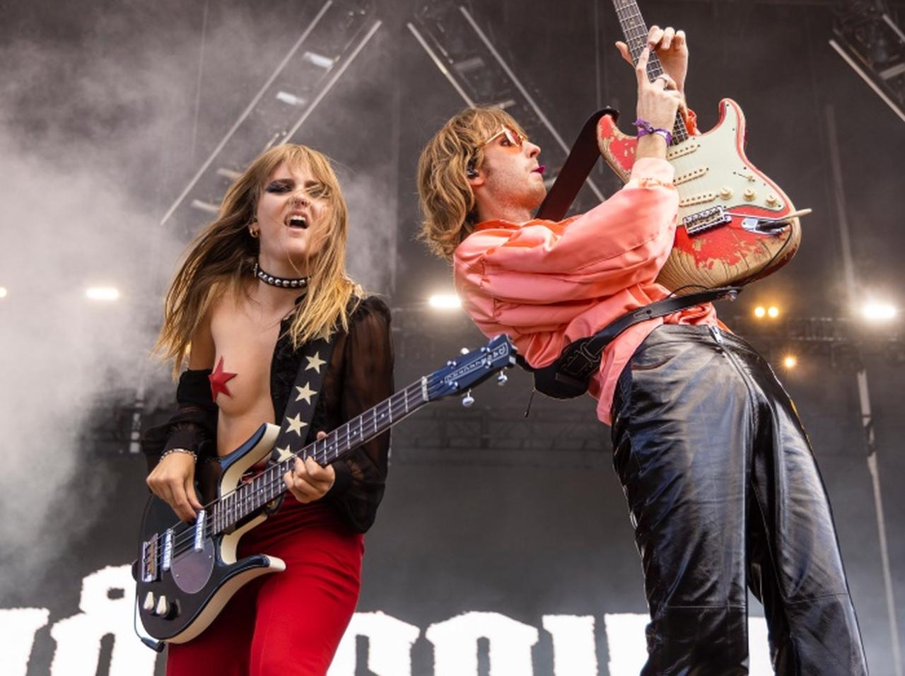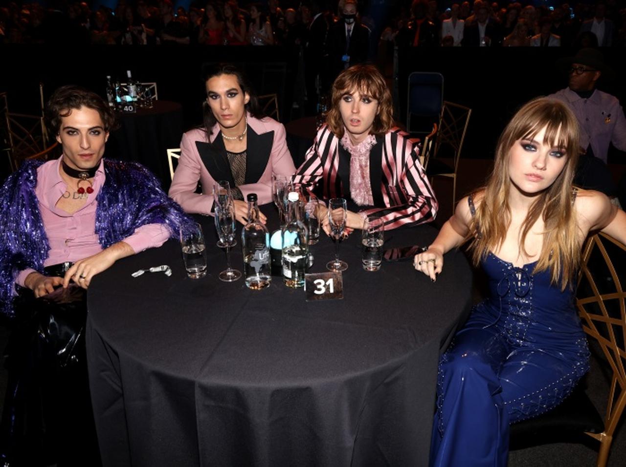 イタリア発のバンド、マネスキンのダミアーノ・デイヴィッド(vo)、ヴィクトリア・デ・アンジェリス(b)、トーマス・ラッジ(g)、イーサン・トルキオ(ds) の関係に迫る。
