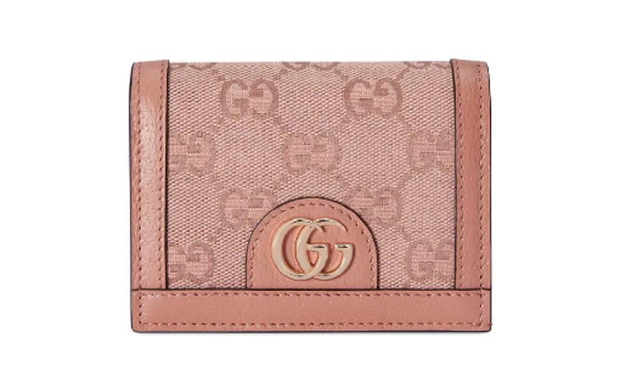 ブラッシュピンクのカラーが上品でカワイイ、グッチ(Gucci)の二つ折り財布。グッチらしいGGパターンのキャンバスデザインに、ゴールドのダブルGロゴをオン。コンパクトなサイズ感なのに、カードも小銭もしっかり収納できる。