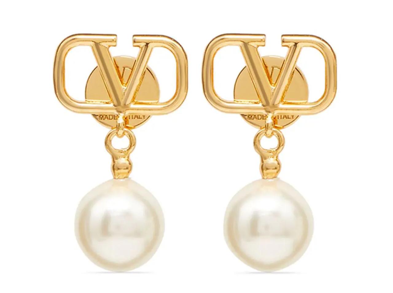 ヴァレンティノ・ガラヴァーニ(Valentino Garavani)の「Vロゴ パールドロップ ピアス」。ブランドを象徴するVロゴとパールのコンビネーションが上品でオシャレ。