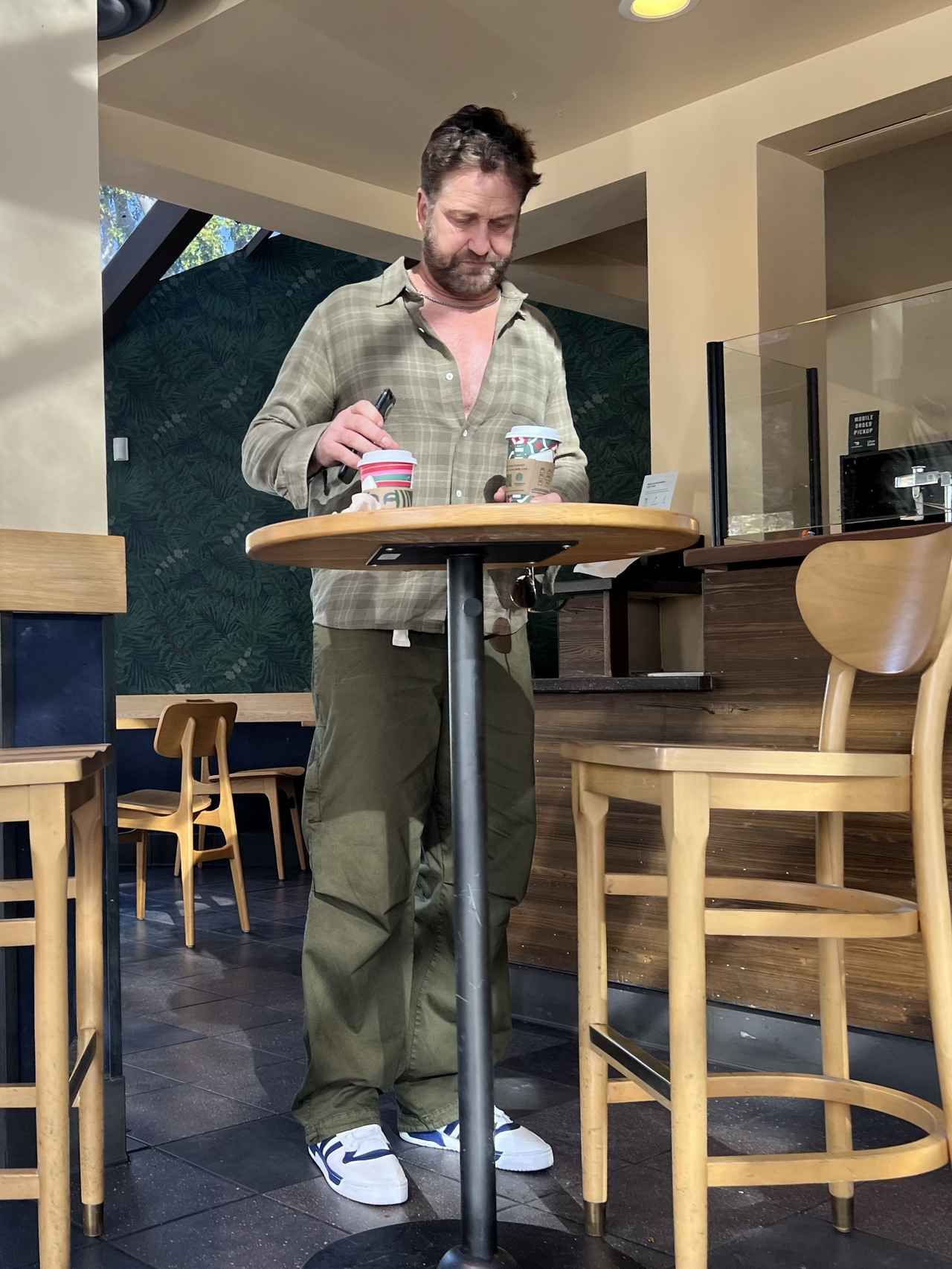映画『300 〈スリーハンドレッド〉』や『P.S. アイラヴユー』などで知られるハリウッド俳優のジェラルド・バトラーが、カリフォルニア州マイアミのスターバックスに登場。