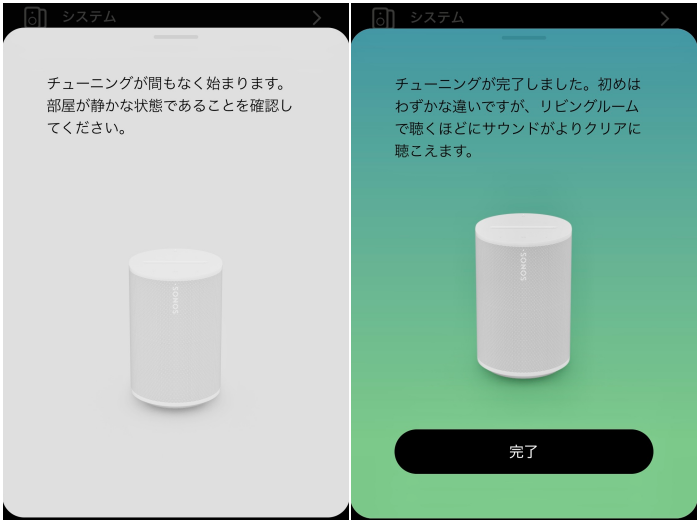 そして、「Sonos Era 100」がスペシャルなのはここから。なんと、スピーカーが置かれた空間を即座に認識して、空間に合わせた完璧なチューニングをしてくれるのだ。アプリで操作するだけで、簡単にその空間に適したチューニングをスタート。