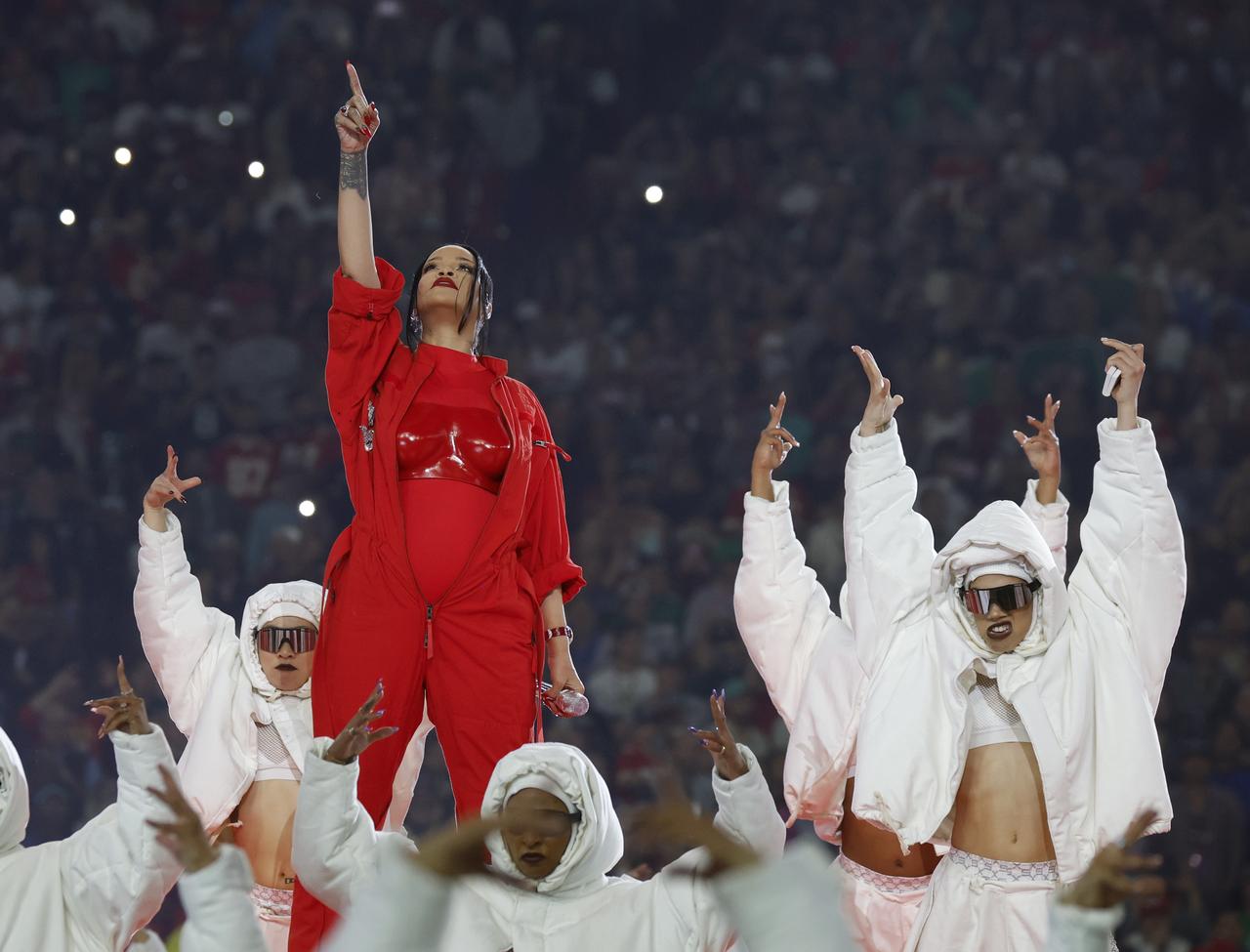 2023年のスーパーボウルのハーフタイムショーで妊娠したことを発表したリアーナ。じつは、ハーフタイムショーで妊娠発表する予定はなかったと激白。(フロントロウ編集部)