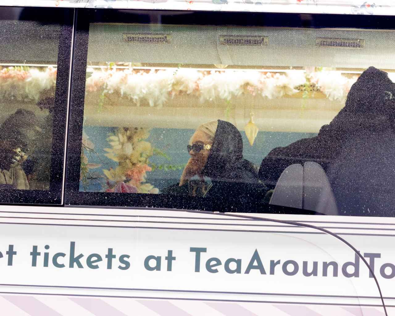 普段は専用のクルマでの移動が多いビヨンセ御一行だが、今回はなんと観光バスに乗車。ニューヨークでよく目にする、アフタヌーンティーをしながら街を観光できるティー・アフター・タウンという観光バスを利用。