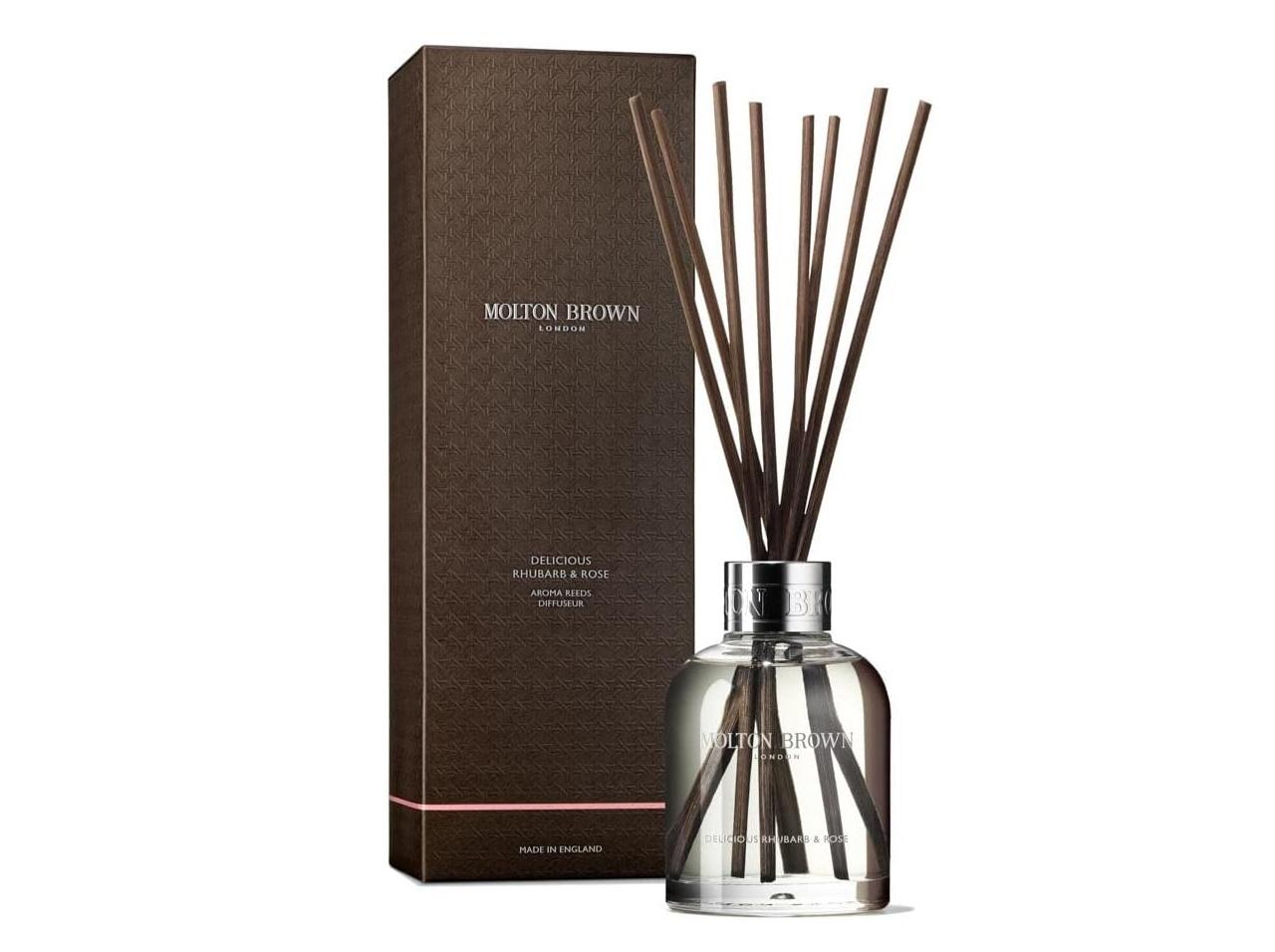 MOLTON BROWN(モルトンブラウン)の「デリシャス ルバーブ&ローズ アロマリード」は、ジューシーで甘く爽やかなフローラルフルーティノートのアロマリード。ルバーブやシトラス、ローズ、スパンシュガーをブレンド。クラシックな甘さがリラックスした雰囲気へと導く。