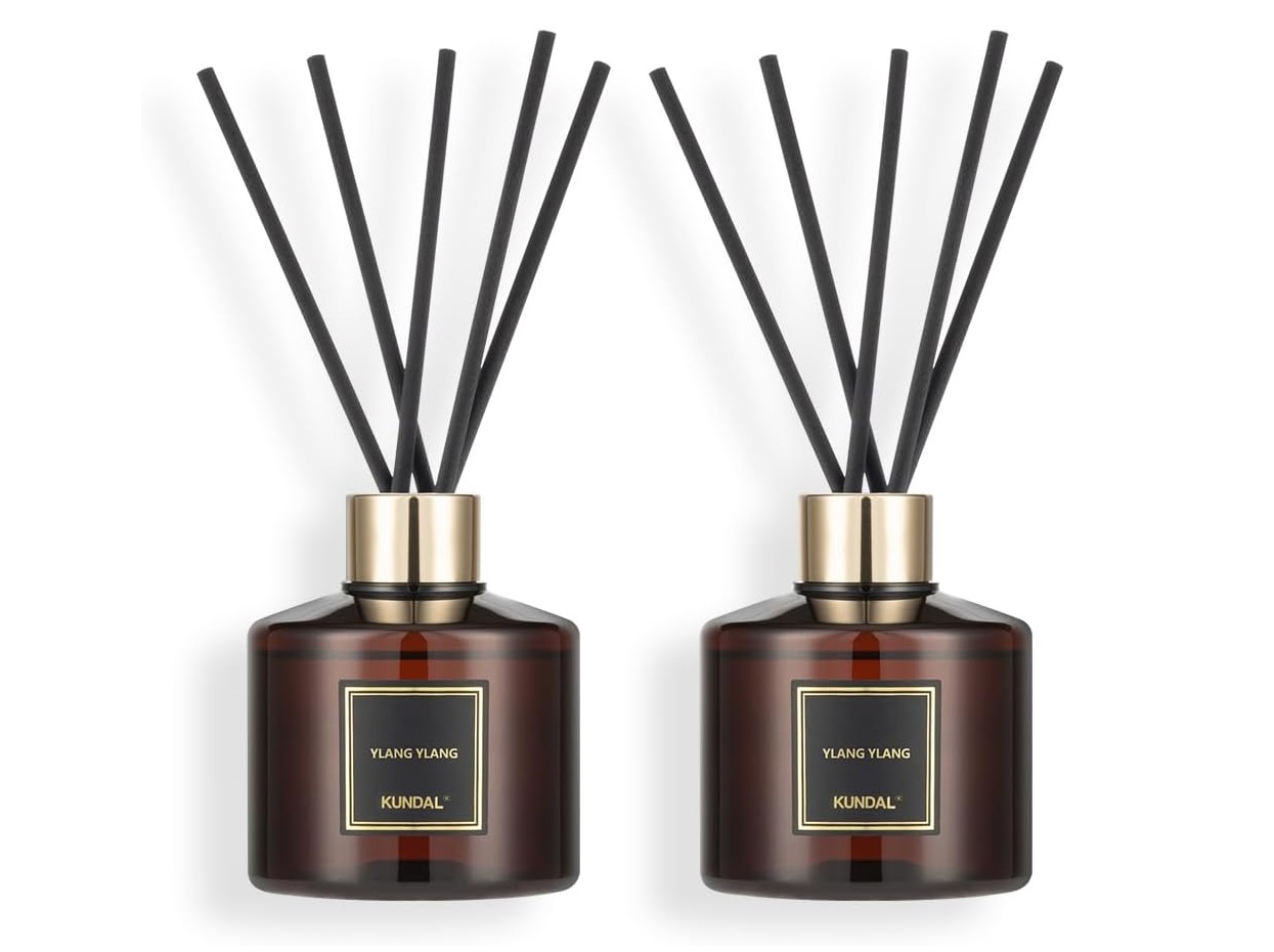 KUNDAL(クンダル)の「パフュームディフューザー200mlセット」は、ブランドのシグネチャーの香りを込めたパフュームディフューザー2個セット。アルコール臭が少なく低刺激の植物性エタノールを使用し、植物由来エキス5種類を配合。イランイランをはじめ、15種におよぶ豊富な香りからお気に入りをチョイスできる。