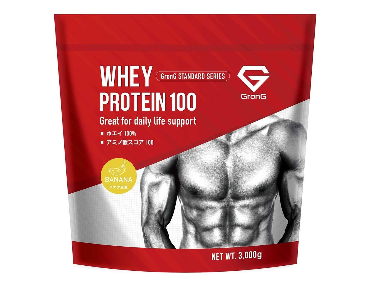 GronG(グロング)の「ホエイプロテイン100 スタンダード」は、美味しくてコスパも抜群なプロテインを選びたい人にオススメ。シリーズ全風味で100g当たりのたんぱく質量75g以上を誇り、11種類のビタミンを配合し、アミノ酸スコアも100。効率よく身体づくりをサポートしてくれる。