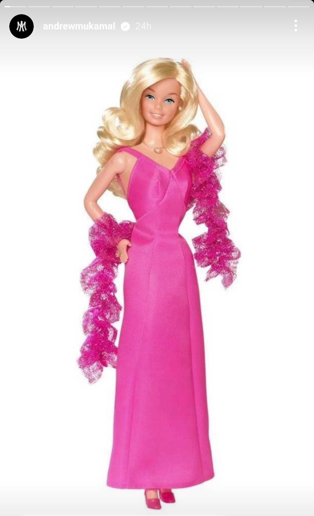 今回マーゴットが着用した衣装のモチーフとなったのは、1977年に発売されたスーパースターというシリーズのもの。バービー人形が着用していたドレスはサテン生地だったものの、ネックラインやショールなどディテールはかなりそっくり。