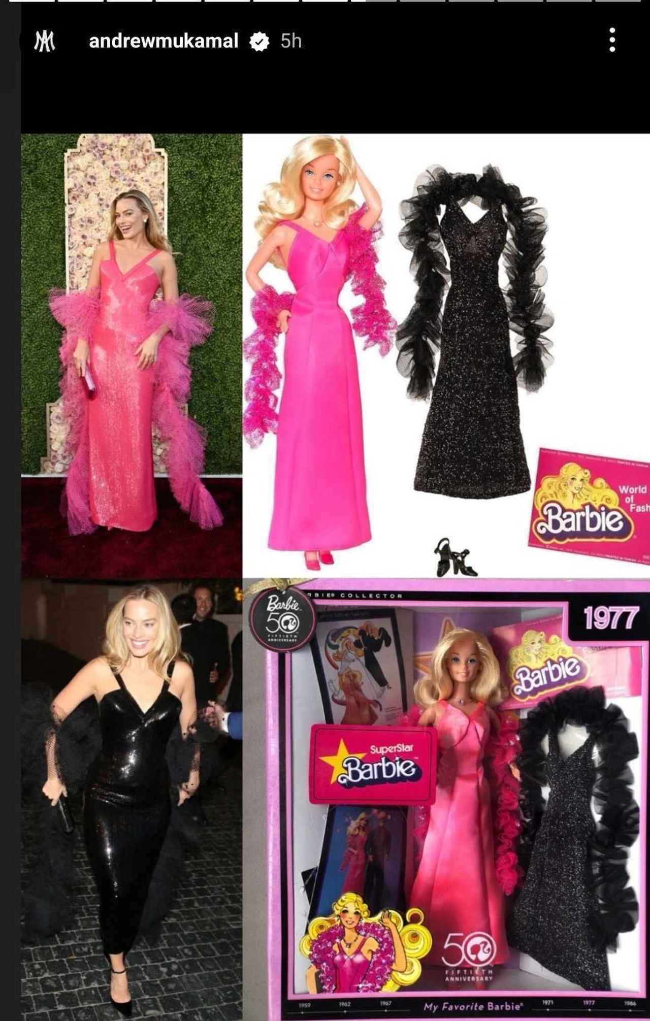 じつは今回マーゴットが着用した2つのドレスがインスパイアされているのは、バービー人形が50周年の時にセットで販売されていた特別なコレクション。マーゴットはそれを忠実に再現してみせた。