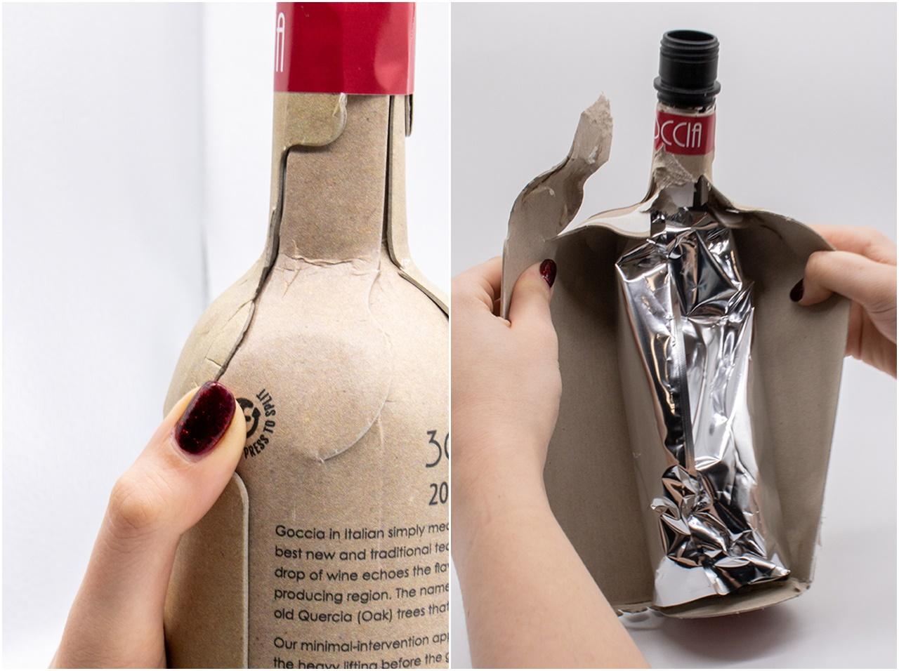 Frugal Bottleは、最大94%がリサイクル可能な厚紙でできていて、水分に触れる部分はアルミのような素材でできたパック状になっている。そのため漏れや劣化の心配がなく、安心して飲むことが可能。さらに分別も簡単な設計となっている。