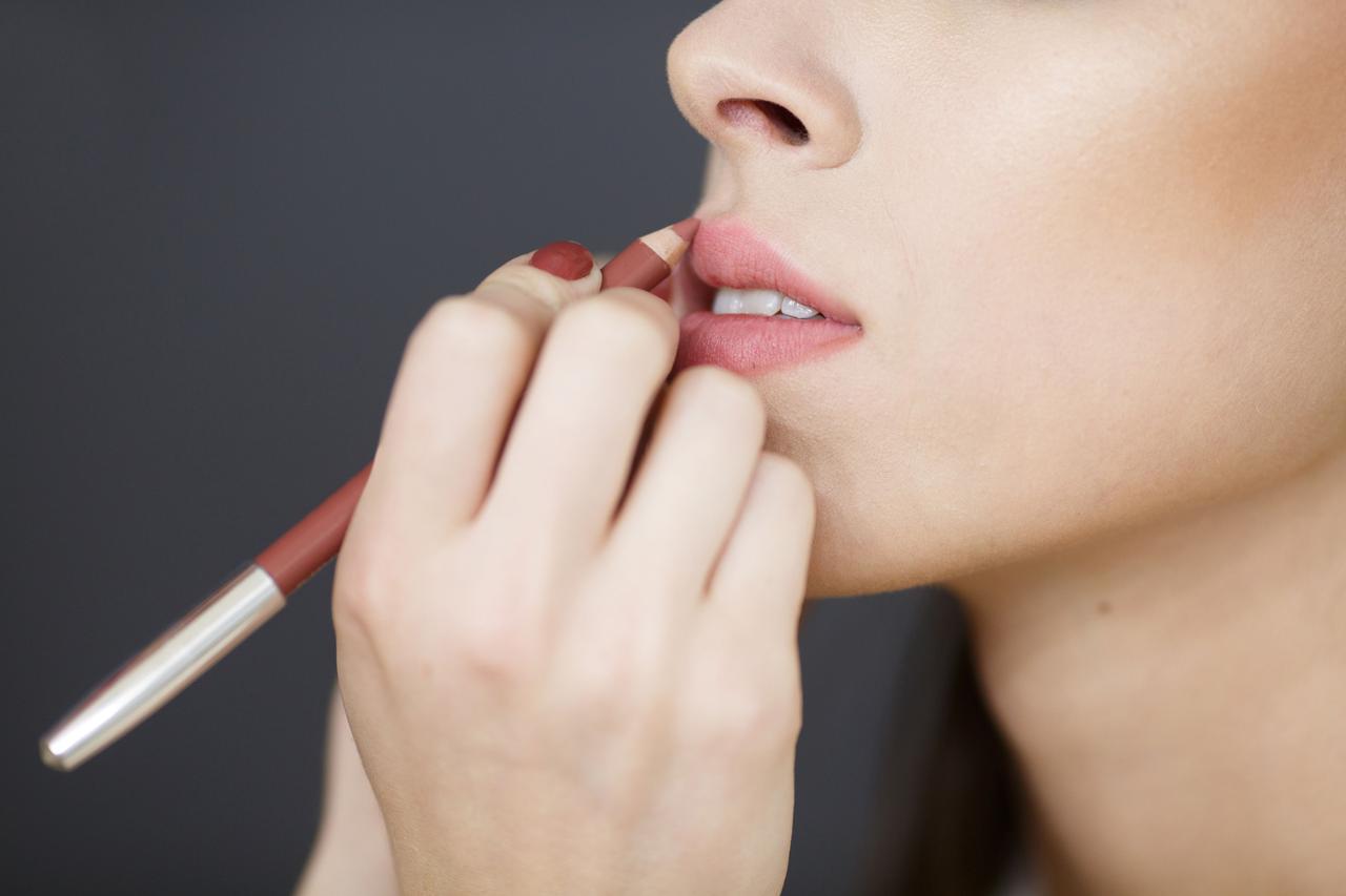 ニールは、「ヌードカラーなどニュートラルなカラーのリップライナーをプラスしてみてください」とアドバイスし、このようなカラーでリップラインを描くことで、肌とグリッターリップの差がカモフラージュされてなじみやすくなると説明。