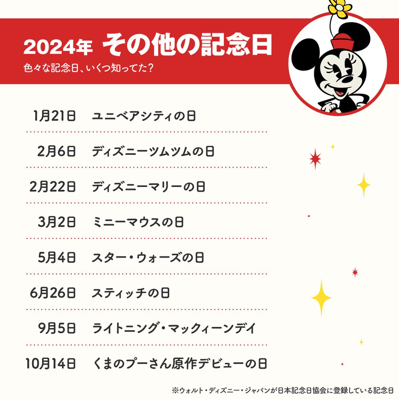 2024年は『アナと雪の女王』、『ライオン・キング』、『マレフィセント』などの特別イヤー。また、 2月の「ディズニーマリーの日」って何? ファン待望の「スター・ウォーズ セレブレーション」はいつ? ディズニーの記念日や周年をまとめた2024年カレンダーをご紹介。