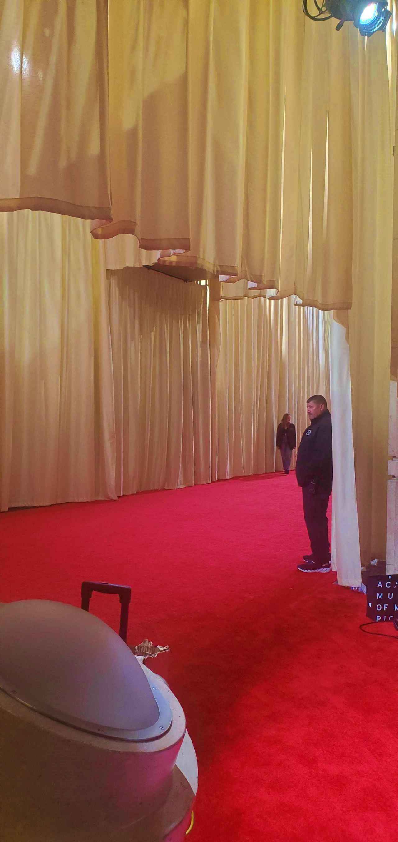 前日ということもあり、設営と共に各所でリハーサルが行なわれていた。レッドカーペットが敷かれているのはフォトコールを行なう場所だけでなく、セレブが会場に入るまでに通る通路全て。