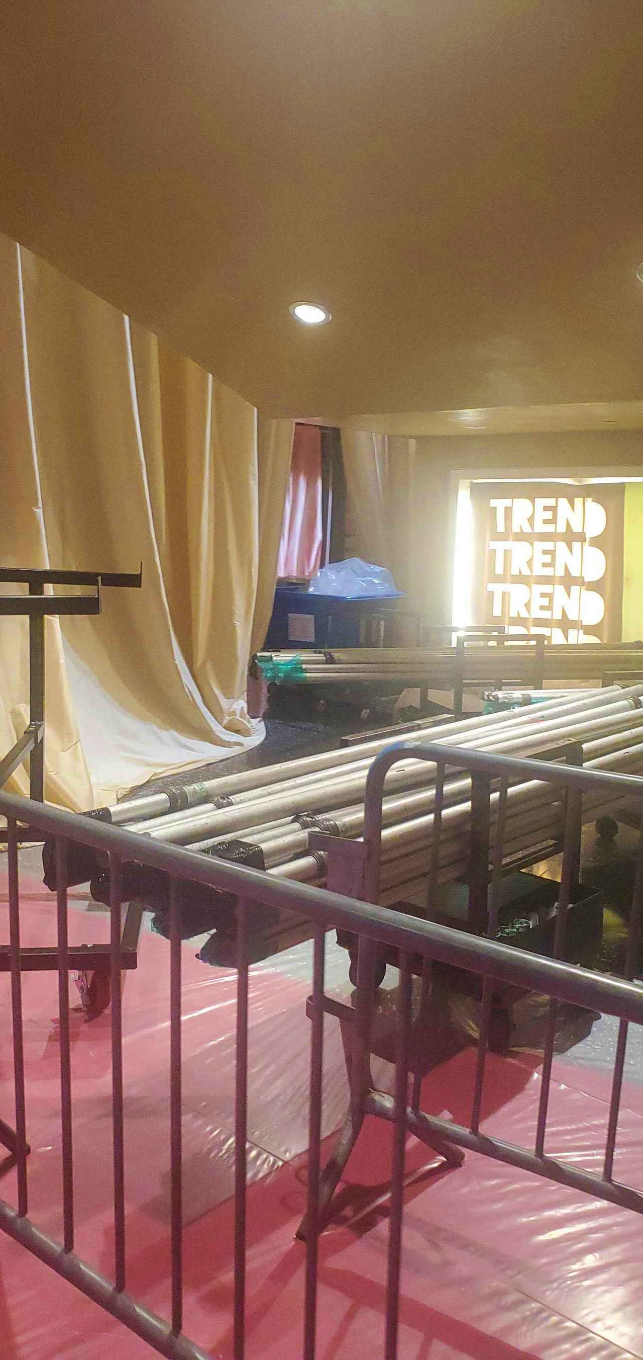 そしていざ、ドルビーシアターの中へ。内部はまだ機材が置かれている場所もあり、翌日に間に合わせるように現場のスタッフが急ピッチで準備。