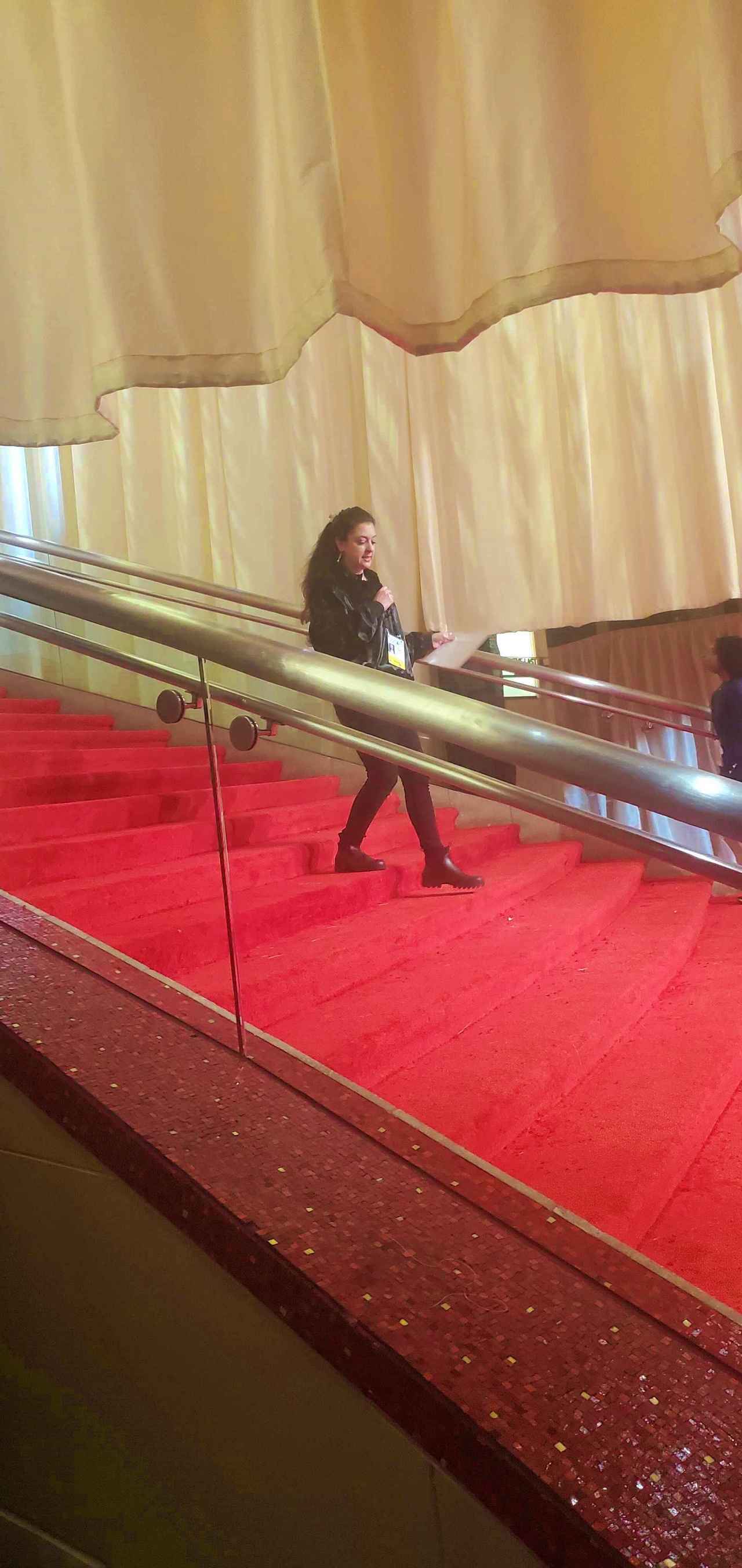 セレブたちがレッドカーペットでのフォトコールを終え、会場に入っていく階段では、カメラリハーサルが行なわれており、エディターが訪れた際はジェイミー・リー・カーティスの名前が書かれた紙を持ったスタッフが階段から下りている姿をカメラマンが撮影していた。