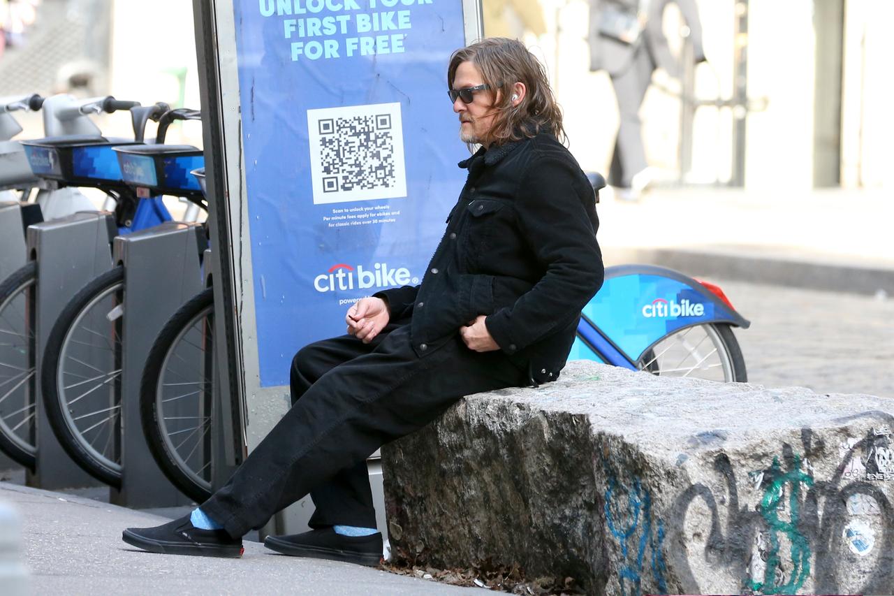 その正体は、ドラマ『ウォーキング・デッド』のダリル役でおなじみのノーマン・リーダス。ただベンチに座っているだけで絵になる。イヤホンをつけていたので、音楽を聞きながらボーッとしていた、もしくは誰かと電話していたのかもしれない。