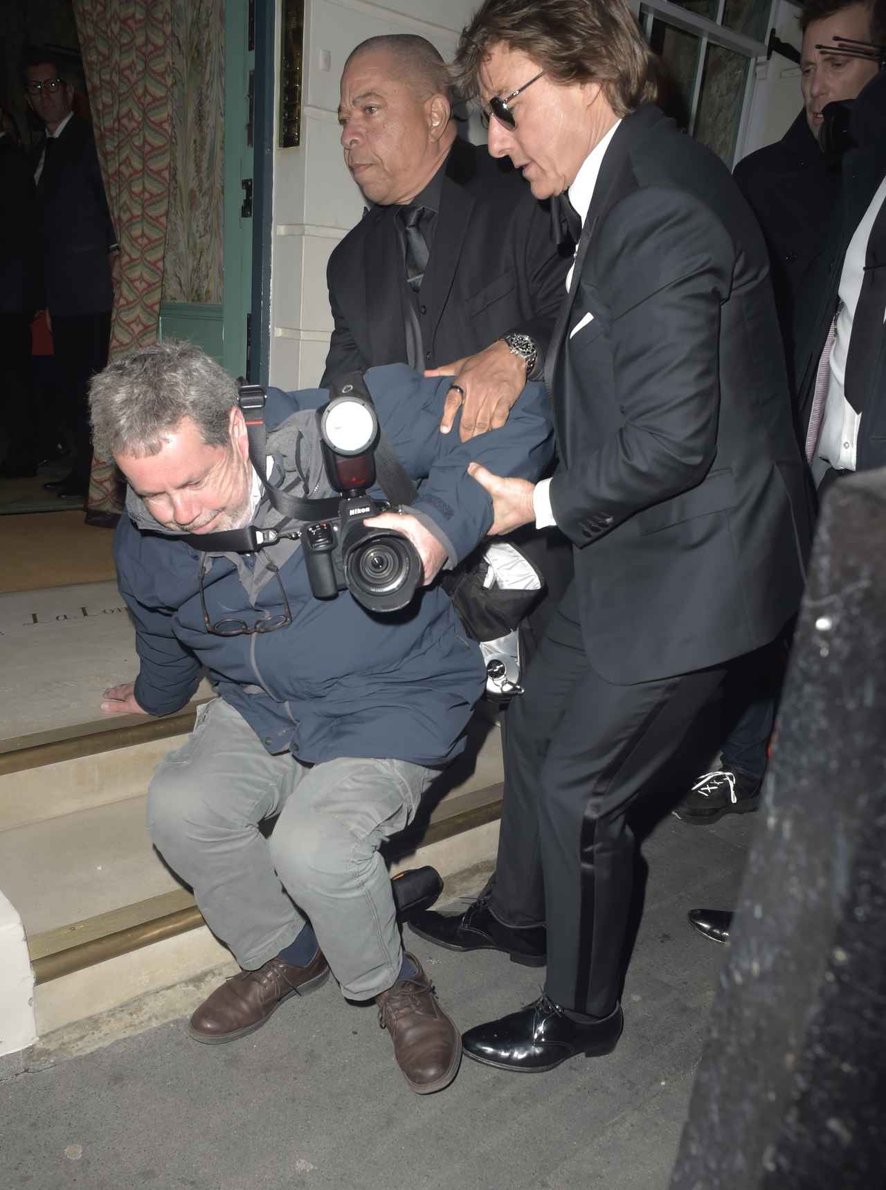 トム・クルーズが目の前で転んだパパラッチにすかさず駆け寄って助ける瞬間をキャッチ。(フロントロウ編集部)