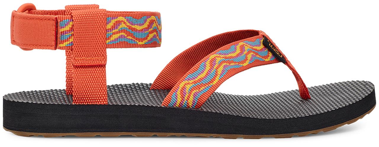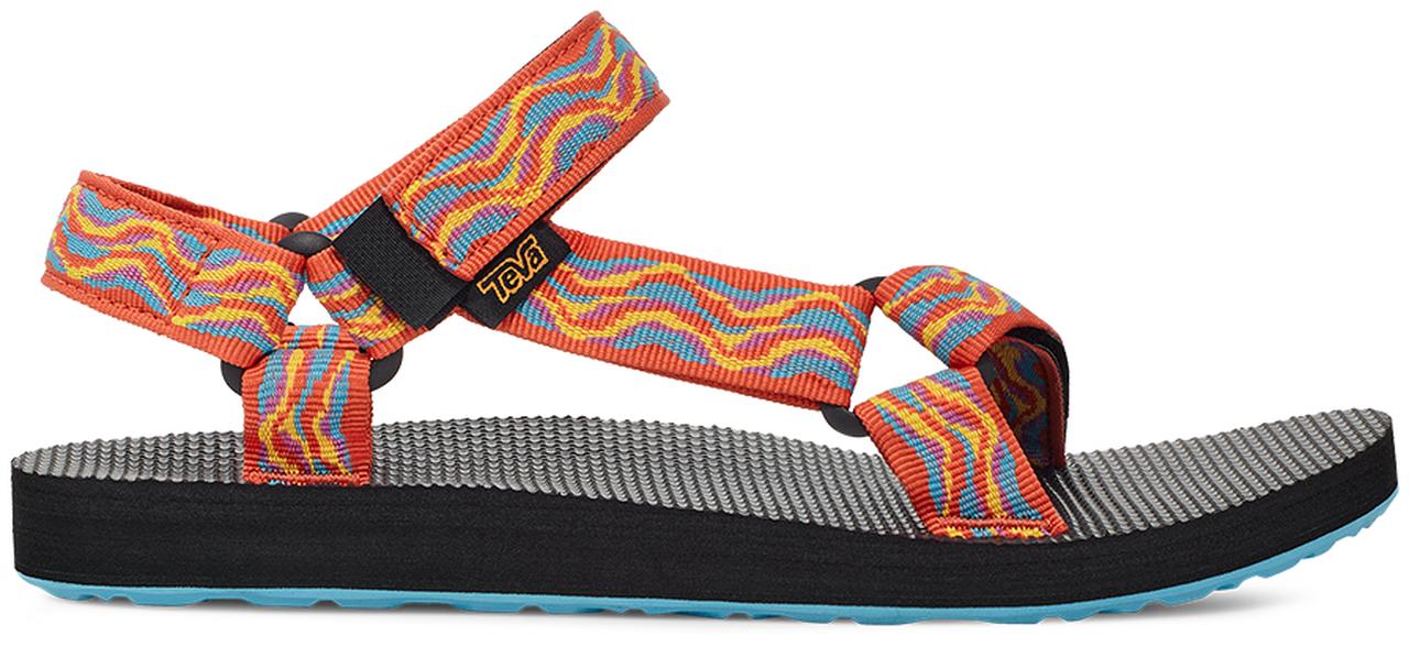 80年代にTevaが初めて作ったサンダルモデルがベースの<オリジナルサンダルリバイブ>。80年代にインスパイアされたノスタルジックなストラップパターンでリメイク。ミッドソールに30%、ア ウトソールに50%、それぞれ粉砕再生素材を使用。バクテリア増殖を抑えるためにフットベッドにペパーミントをベースとしたLife Natural抗菌技術を施してある。